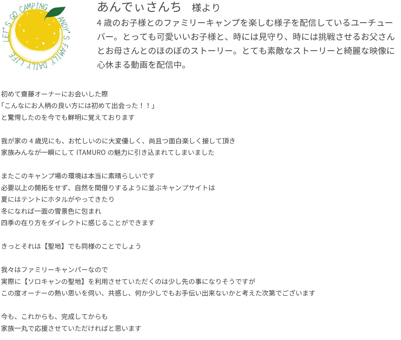 どうか、今後とも「日本一のソロキャンプの聖地」造りにご期待くださいませ!!