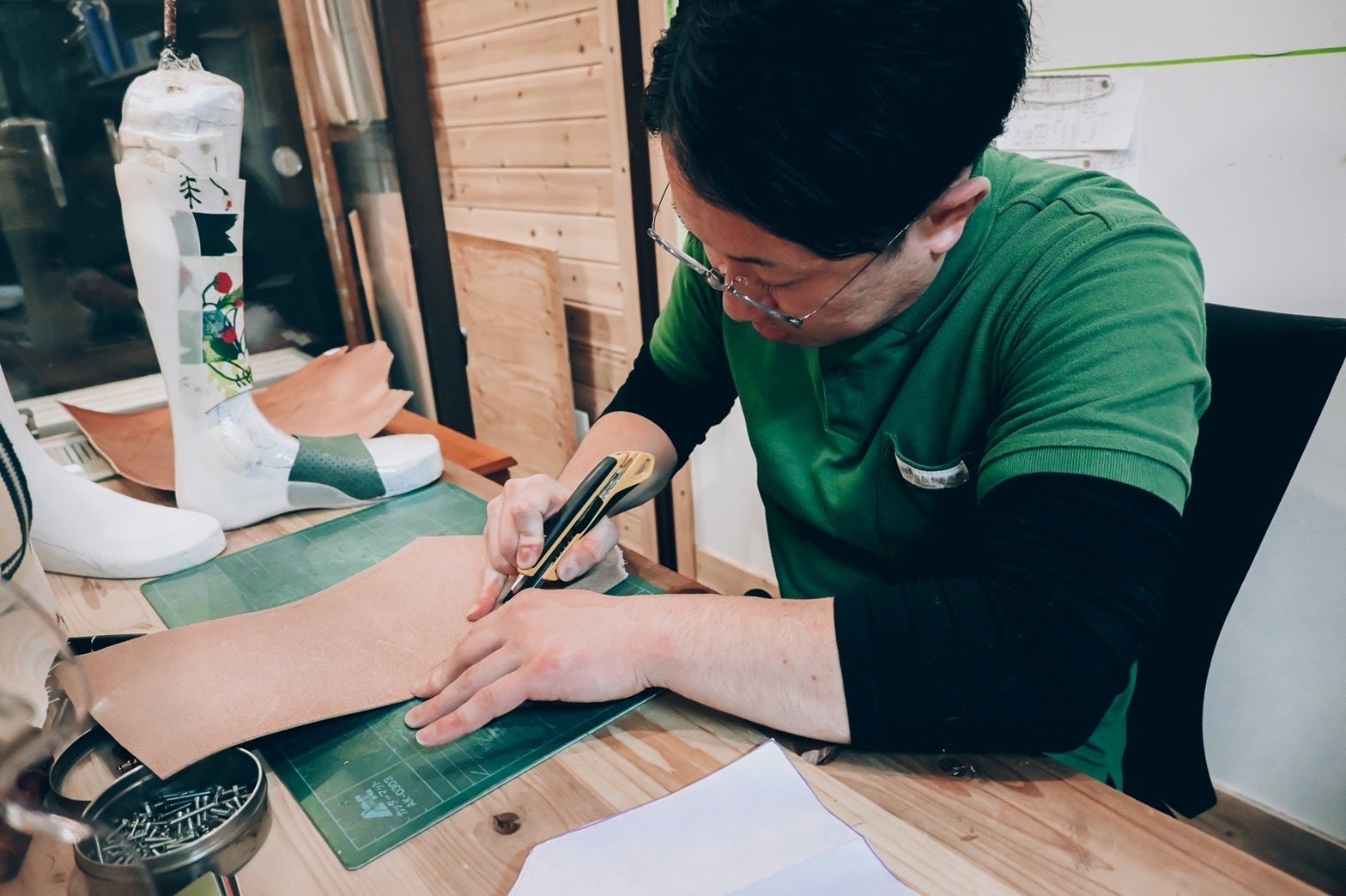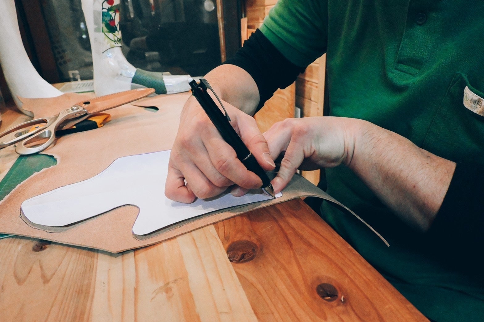 (先代の教え通りに鋲留めの穴あけも丁寧に作業します)