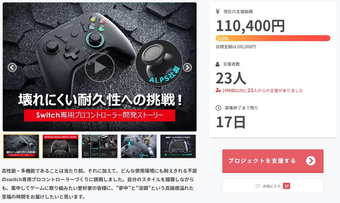 2023/03/28 15:20ご支援者の皆様平素よりお世話になっております。moco 1 Controllerプロジェクトチームです。皆様のご支援のおかげで、公開約1時間で早くも目標金額を達成することができました。スタッフ一同、心より感謝申し上げます。商品に関するご不明点や疑問などございましたら、お気軽にお問い合わせください。また、皆様からの「コメント」もお待ちしております。SNSなどでシェア拡散もしていただけたら嬉しく存じます。最後まで応援よろしくお願いいたします。 もっと見る