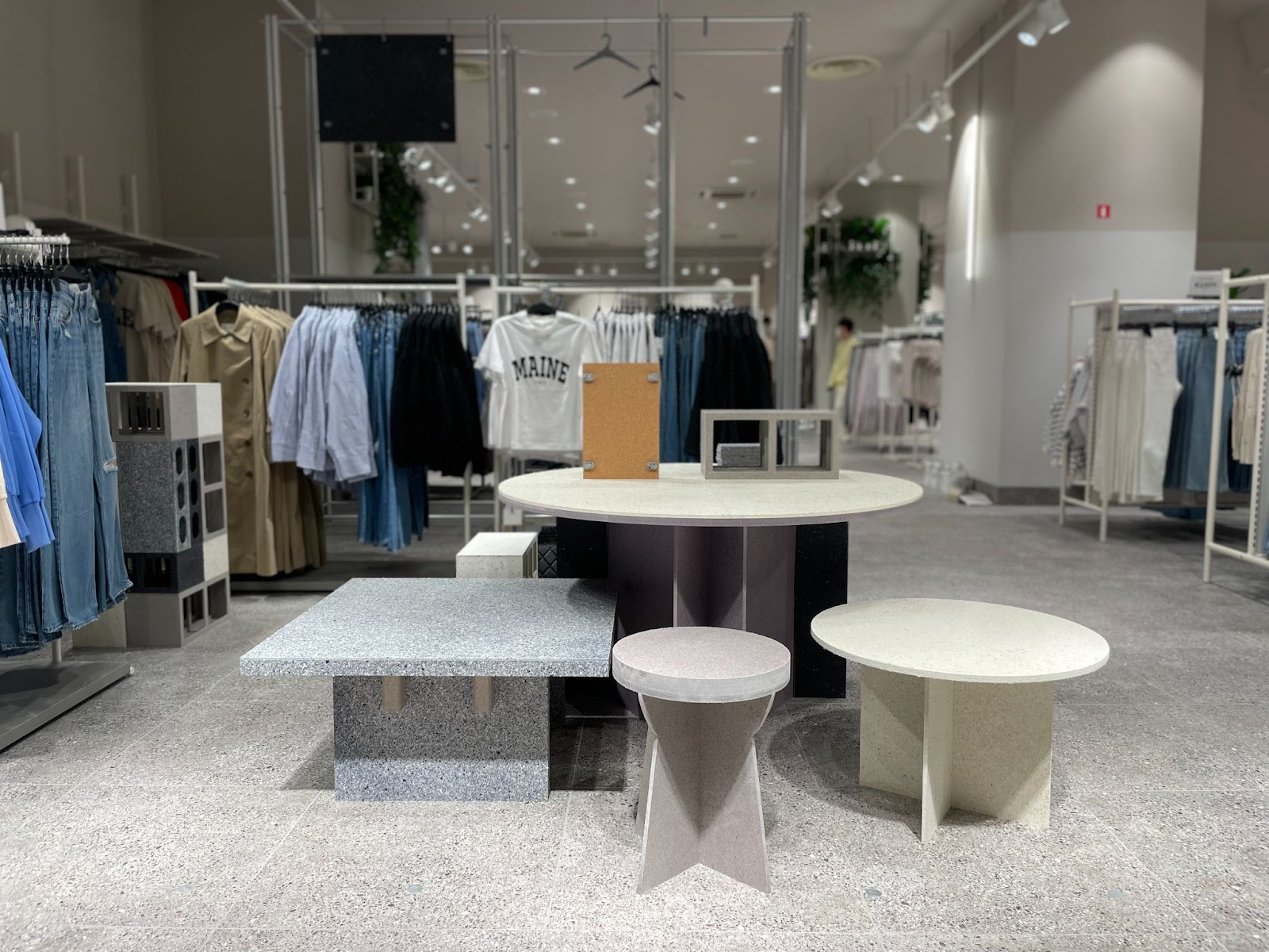 衣類特有の素材感が全面に感じられるように、木材などは使用せず全てPANECOで製作しました!