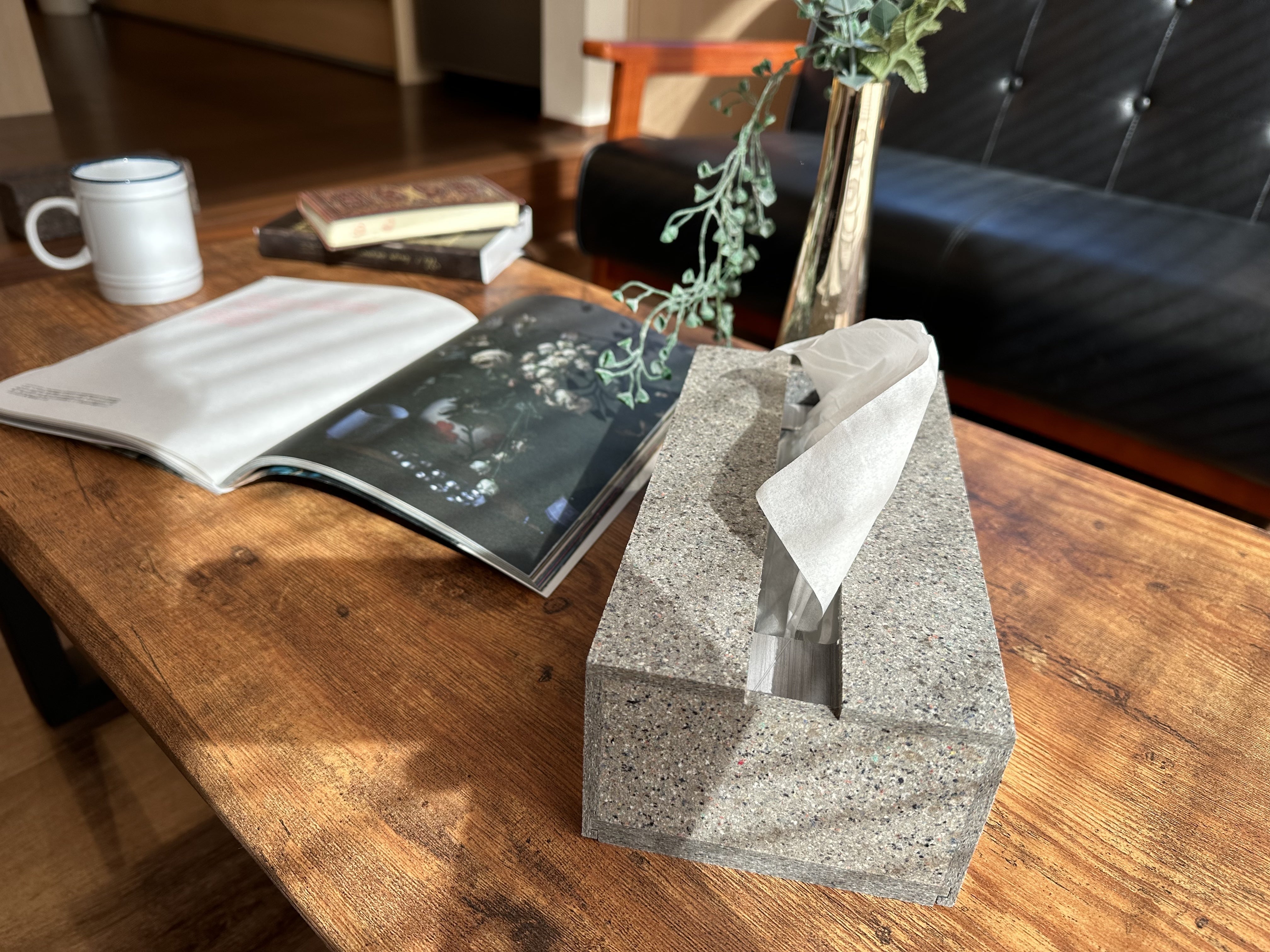 木材とは違い、衣類をアップサイクルすることによってできるまるで生地を触っているかのようなザラっとした手触りなのが特徴です。