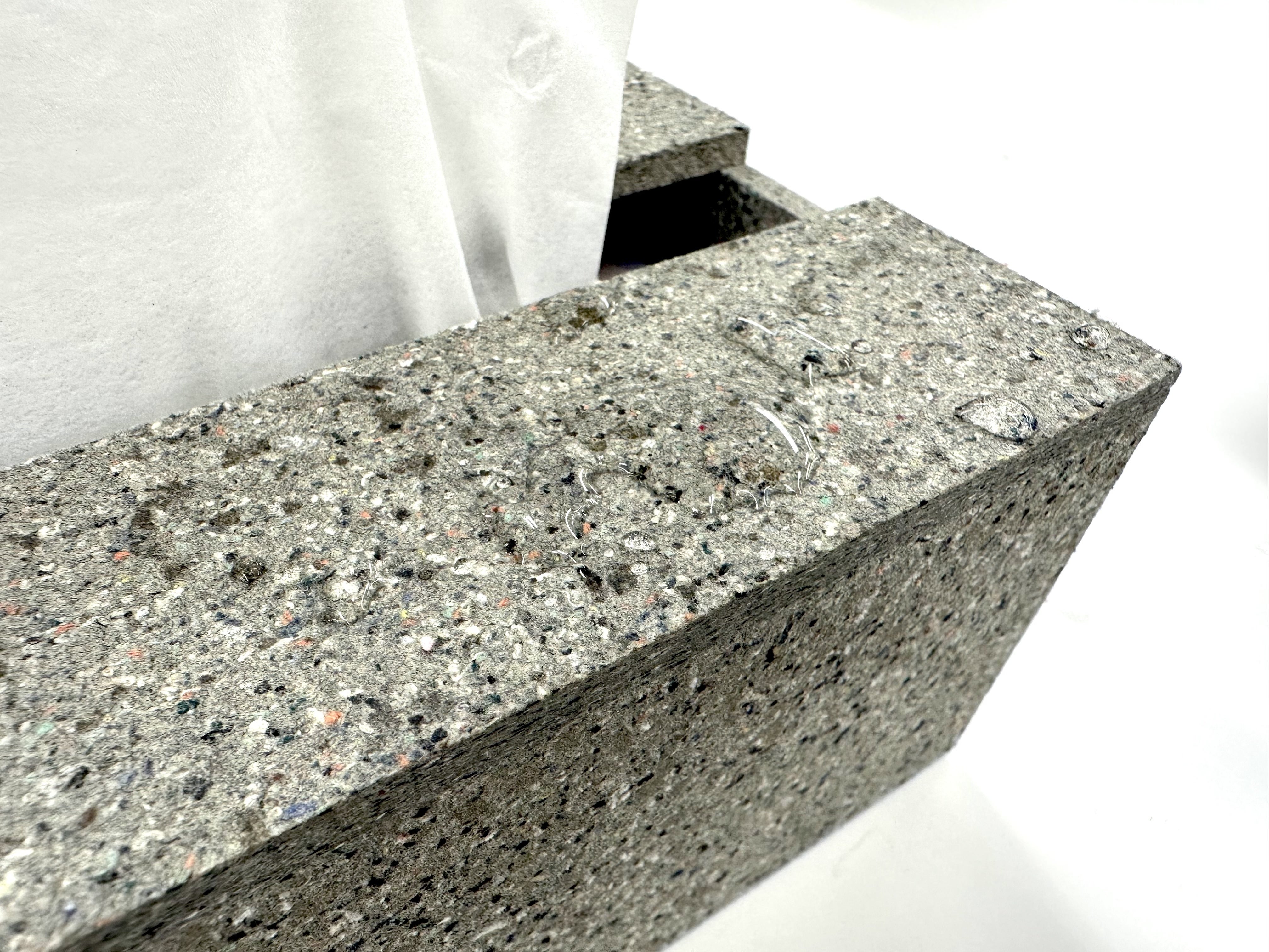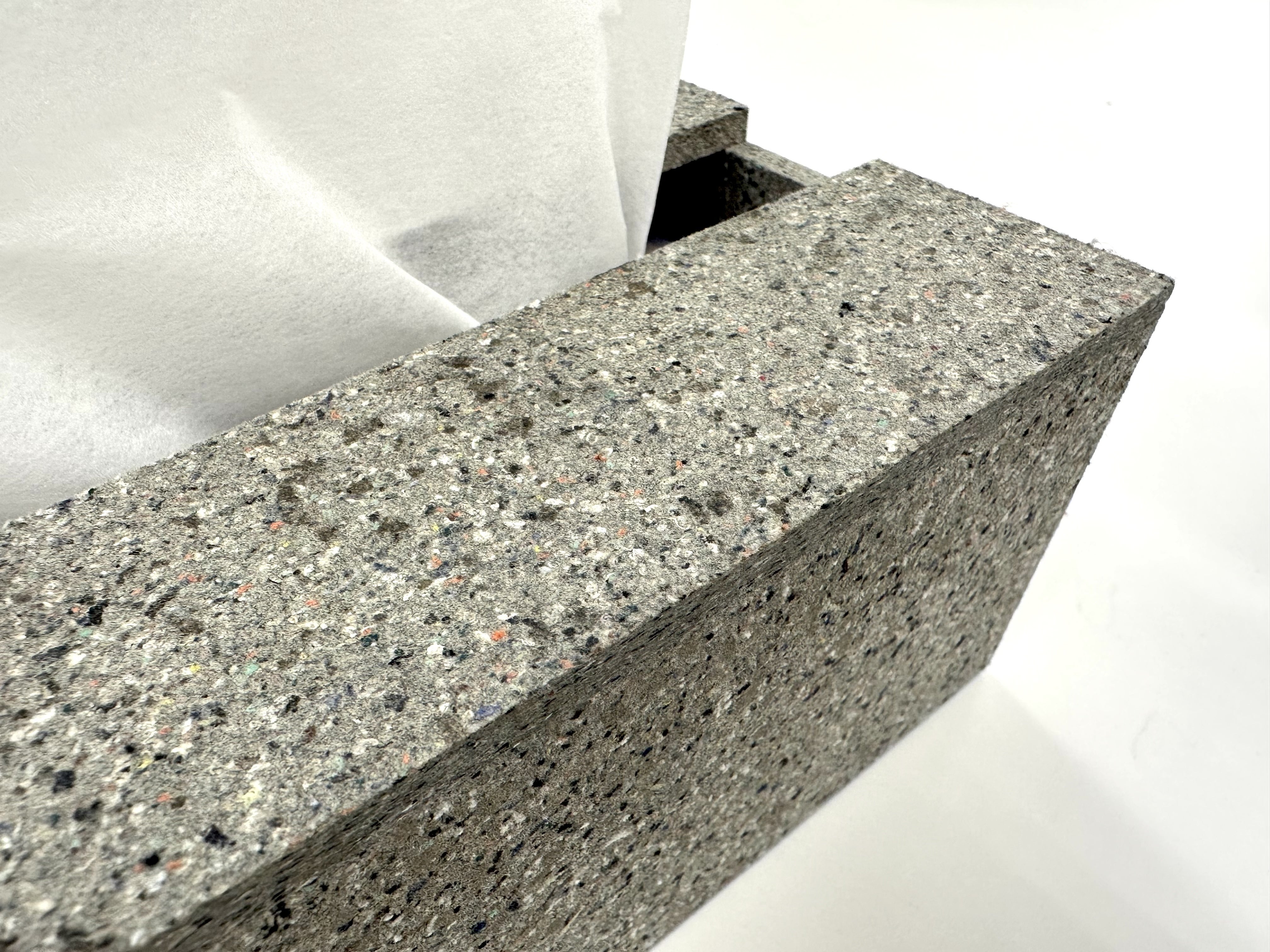 廃棄衣類を90%以上含むことで、木材のような硬さと加工しやすさを両立させました。