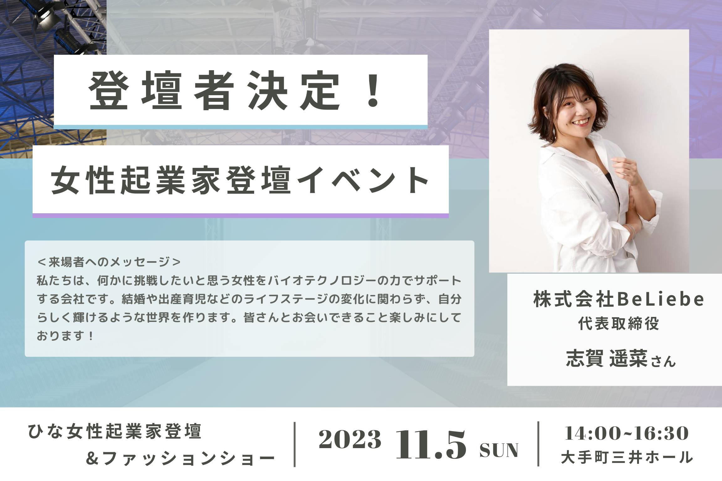 重ねまして、当イベントは多くの若き女性の人生の転換期になりうると確信しております。