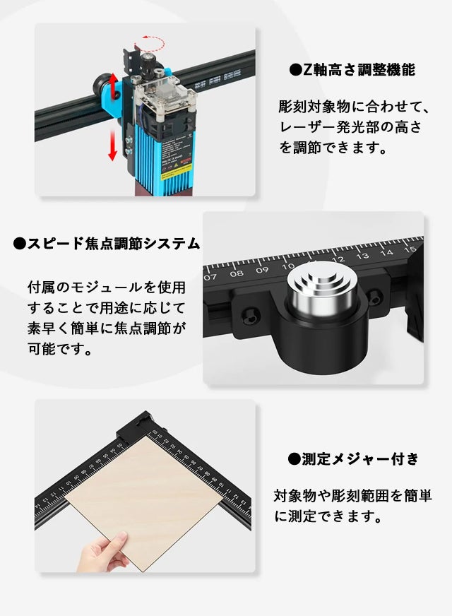 「TTS-25」には455±5nm高品質半導体レーザーを採用しており、レーザー径はわずか0.047*0.09mmと細く、高い加工精度を実現しており、文字や画像をイメージ通りに彫刻できます。