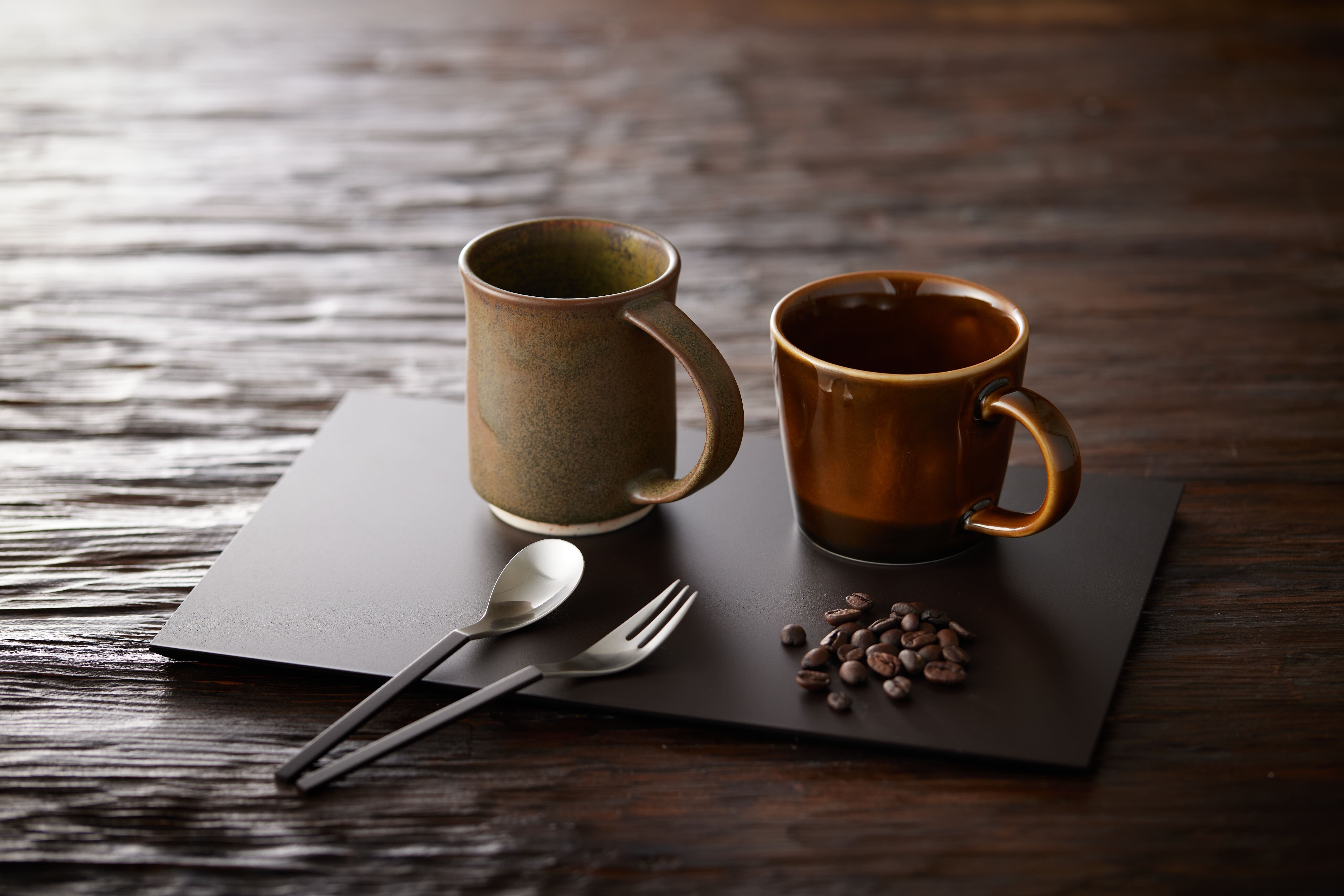マグカップは、口元が大きく開き安定感のあるフォルムが特徴のAタイプと、適度な厚みで柔らかさを感じるダイナーマグをスタイリッシュに仕上げたBタイプの2種類を制作。どちらもコーヒー豆の色に近い、ヴィンテージな雰囲気漂うデザインに仕上げました。
