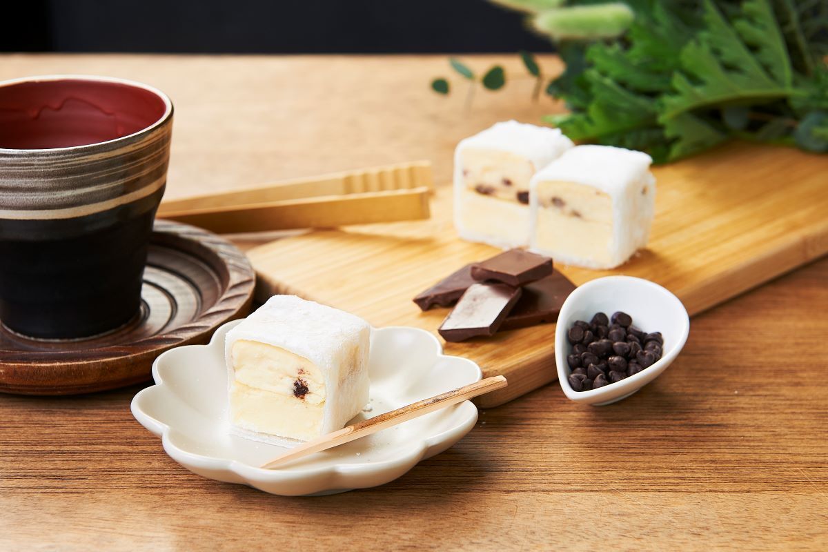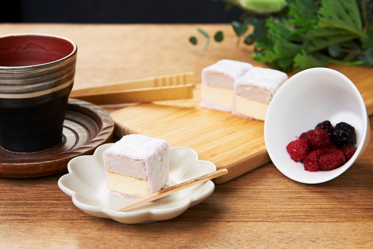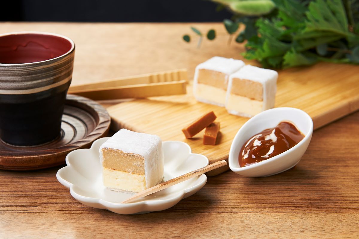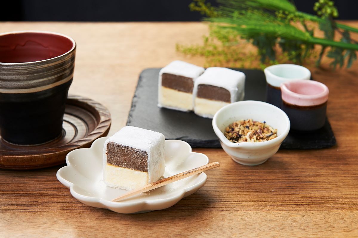 色々なフレーバーを楽しめる二層のバスクチーズケーキを求肥で巻き、