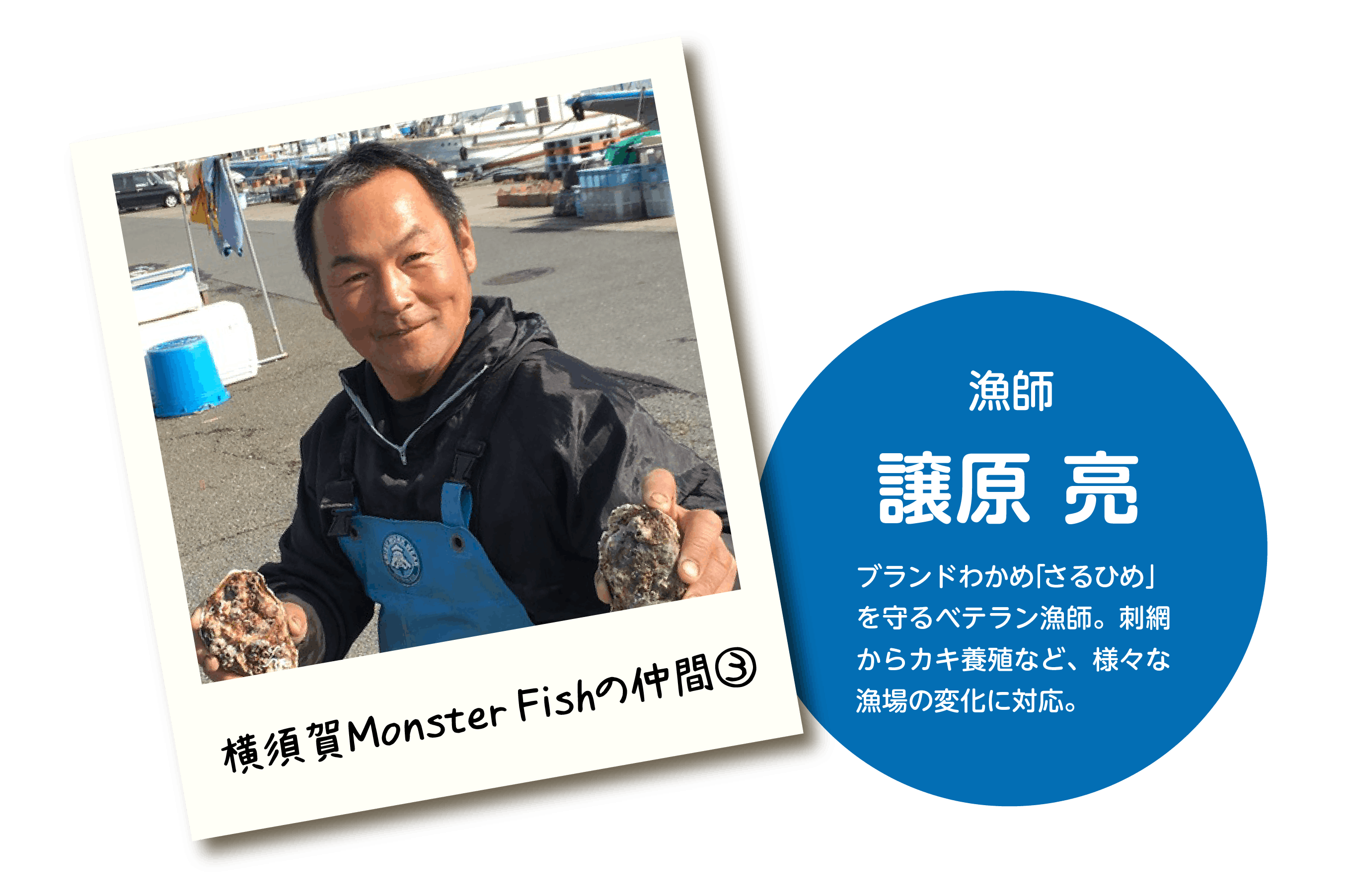 父世代の先人漁師たちが始めた猿島わかめを我々飲食店が「さるひめ」と名付けブランド化したことに対応し「海の畑を育てる」役目を担ってくれています。