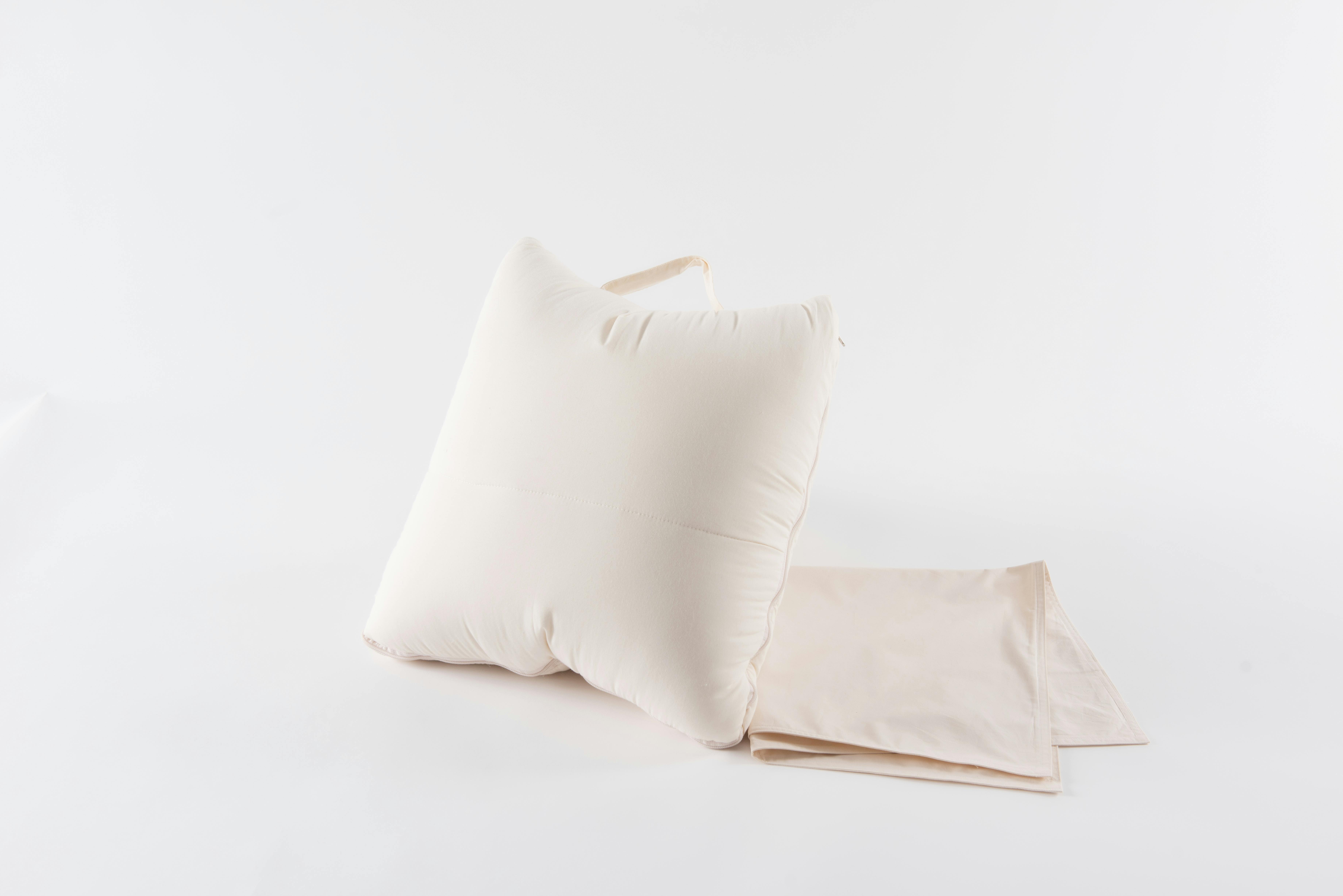 寝袋のサイズに合わせた収納袋は、シンプルでインテリアに馴染みやすいクッションカバーになっているので、クッションとして使用すれば保管場所に困りません。クッションカバーはインテリアに合わせて、素材の違う2種類からお選びいただけます。市販のカバーも適用サイズ!