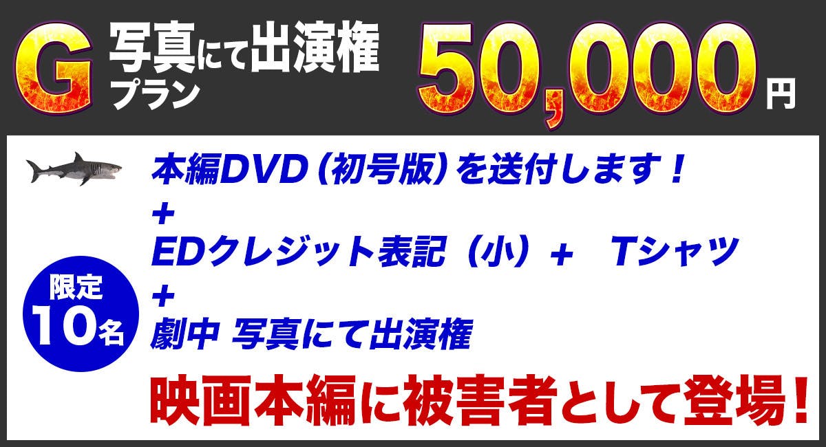 また、サメ映画マニアの方にはおなじみの サメ映画ルーキー 氏のお力添えをいただき、完成した作品は日本国内でのイベントや上映はもちろん、英語字幕をつけることで国内外の映画祭出品と海外市場でのソフト流通を行う予定です。