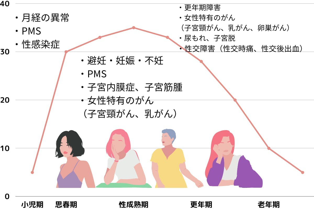 そして生理をむかえ、セックス、避妊、妊娠、性感染症、更年期・・・女性は一生涯で、多くの性の問題と向き合います。