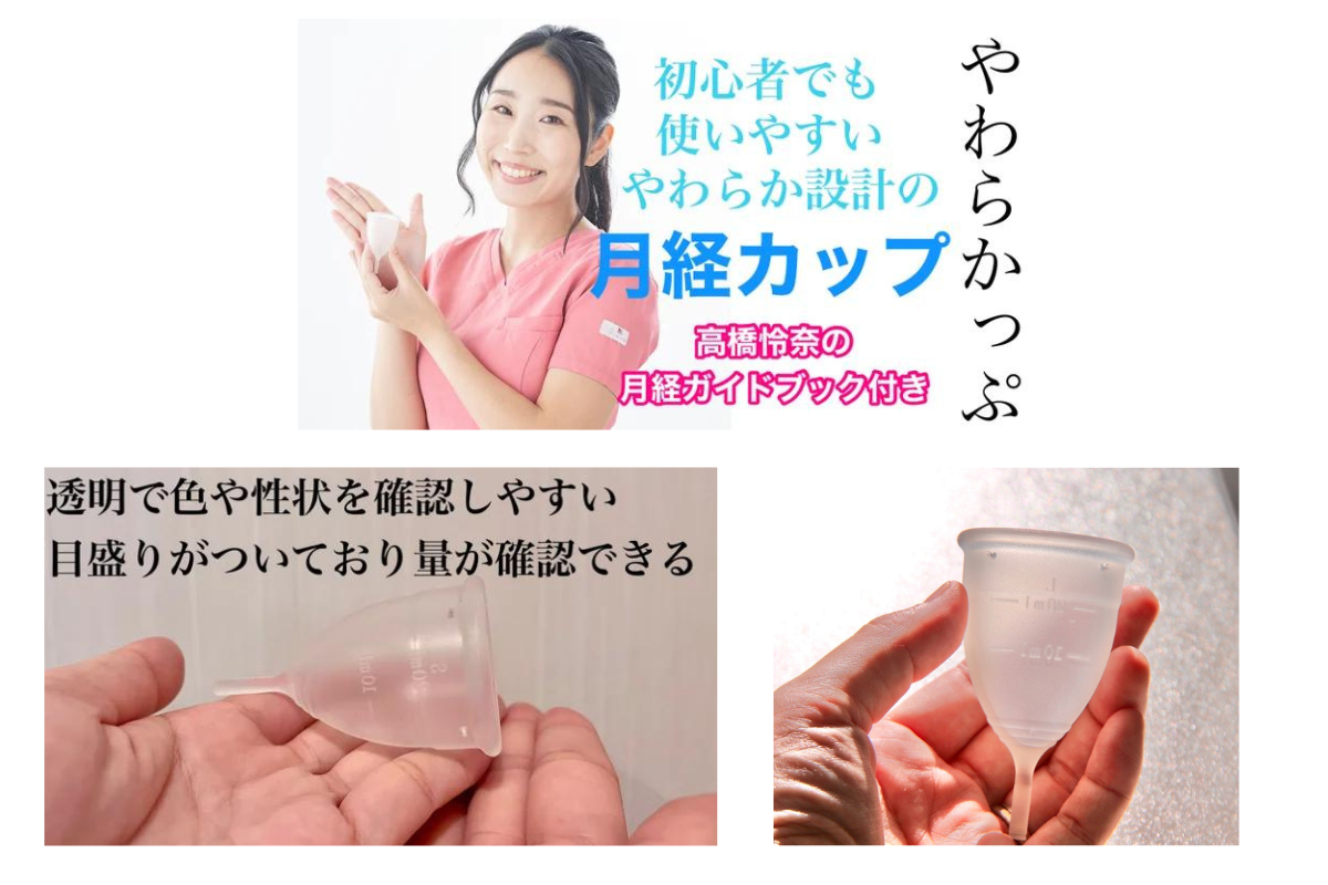 やわらかい素材で、初めてでも優しい月経カップ「やわらかっぷ」(月経の疑問を解決!沢山の女性の悩みに寄り添ってきた高橋怜奈による、月経ガイドブック付き!)が入ります。