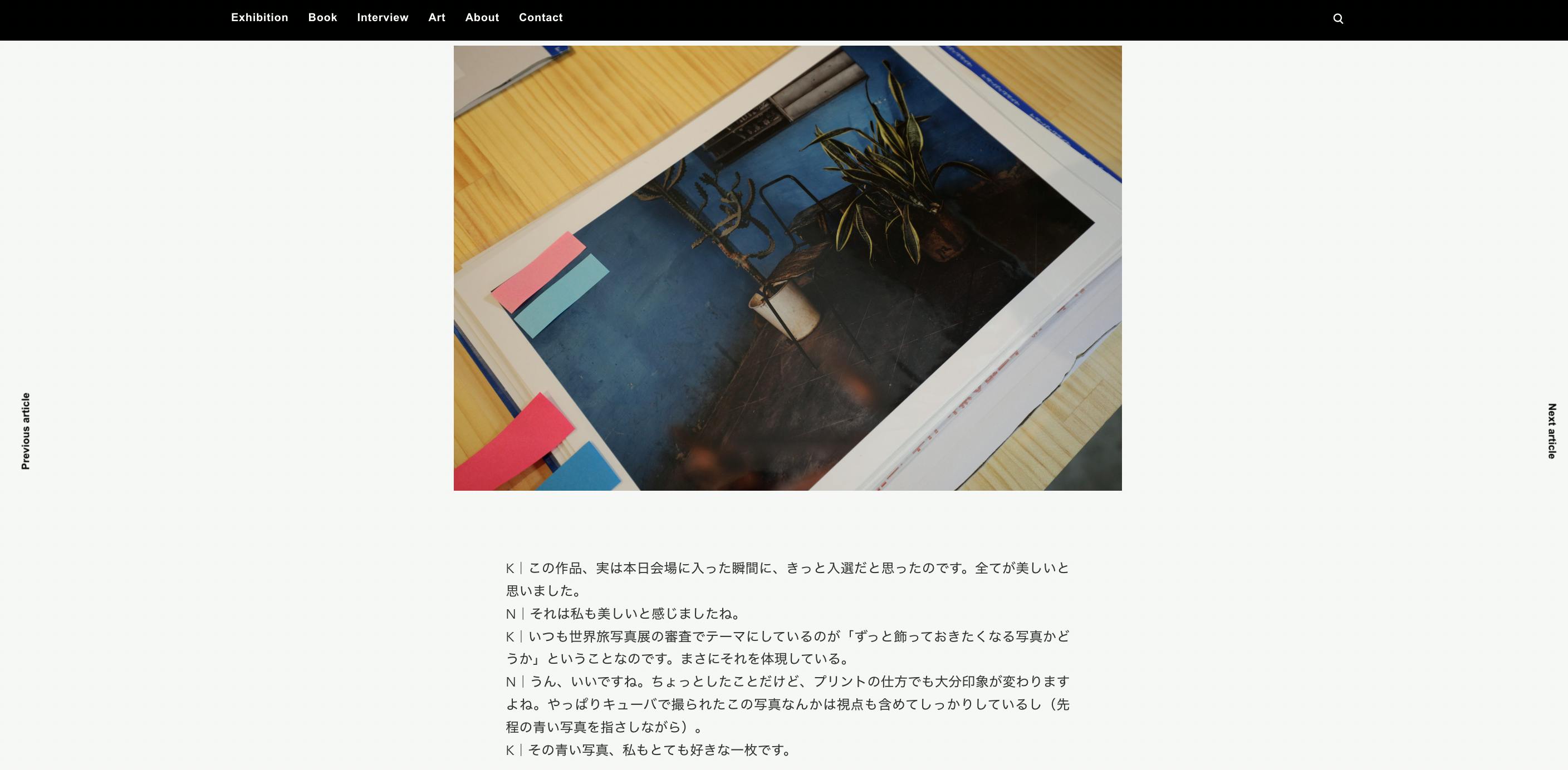 また、Behind the galleryが主催した第四回世界旅写真展に入選し、写真家の巨匠・野町和嘉さんと中村風詩人さんから「実は本日会場に入った瞬間に、きっと入選だと思ったのです。全てが美しいと思いました。」という評価を頂き、キューバの静寂をテーマとした写真集【SEEKING QUIETNESS】を出版して頂きました。