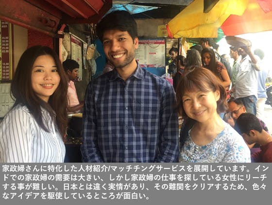 2018/05/16 10:13ムンバイを本社とするこの企業は、家政婦さんにフォーカスした人材紹介サービスを提供しています。ムンバイ以外には、バンガロール、プーネにて営業展開しています。求職者の同社への電話通信も含むIT環境が乏しい、その中で求職者にリーチするための方策など、様々なハードルをクリアするアイデアを現実のものとし、システム化しているのが面白いですね。 もっと見る