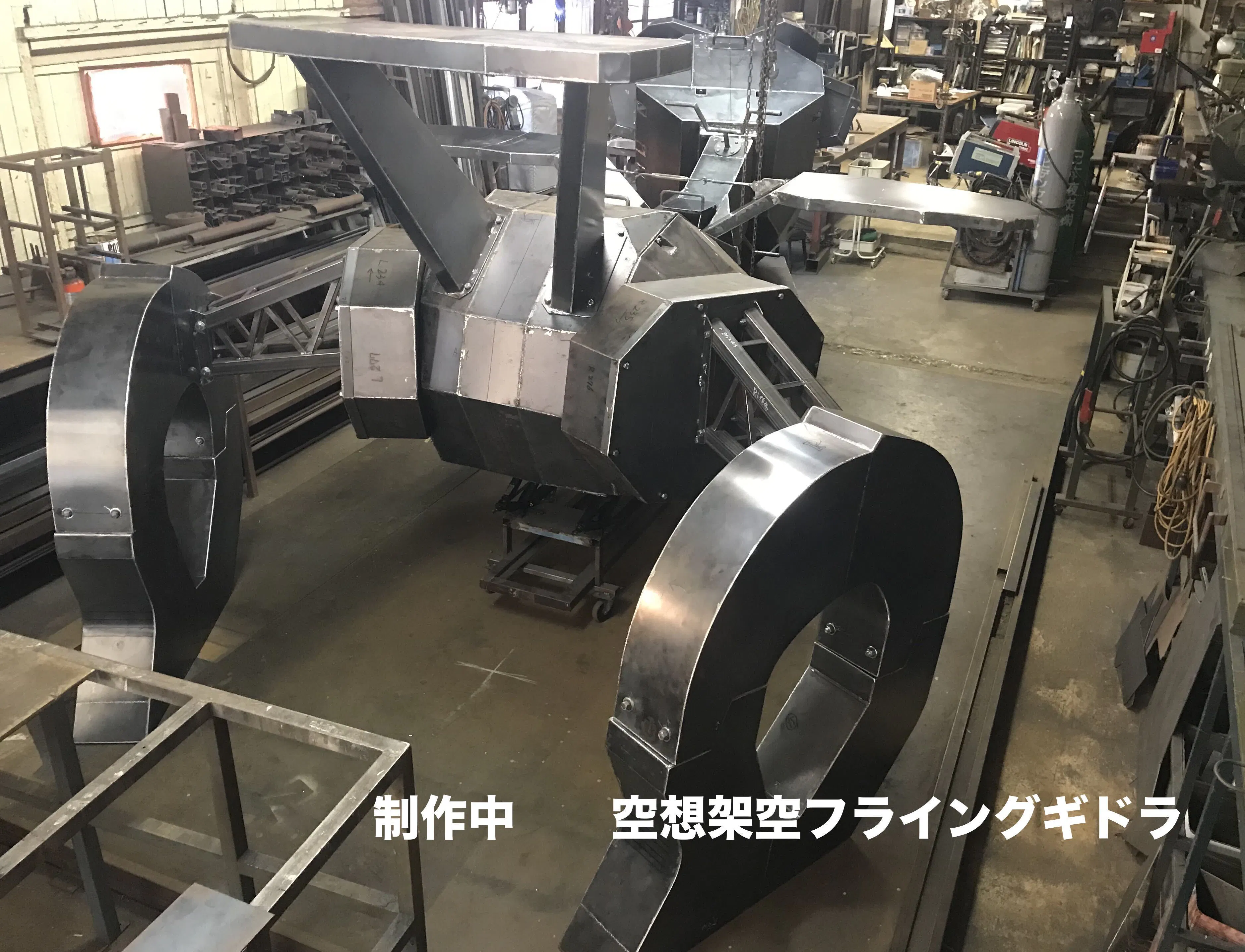 ●大型の彫刻作品を制作するには時間も手間もかなりかかります。今回発表する作品(空想架空フライングギドラ/仮題)は何か具体的な乗り物やモチーフではなく私の中で培ってきた空想の乗り物です。しかし細部には日本の漫画造形の影響がふんだんに盛り込まれております。