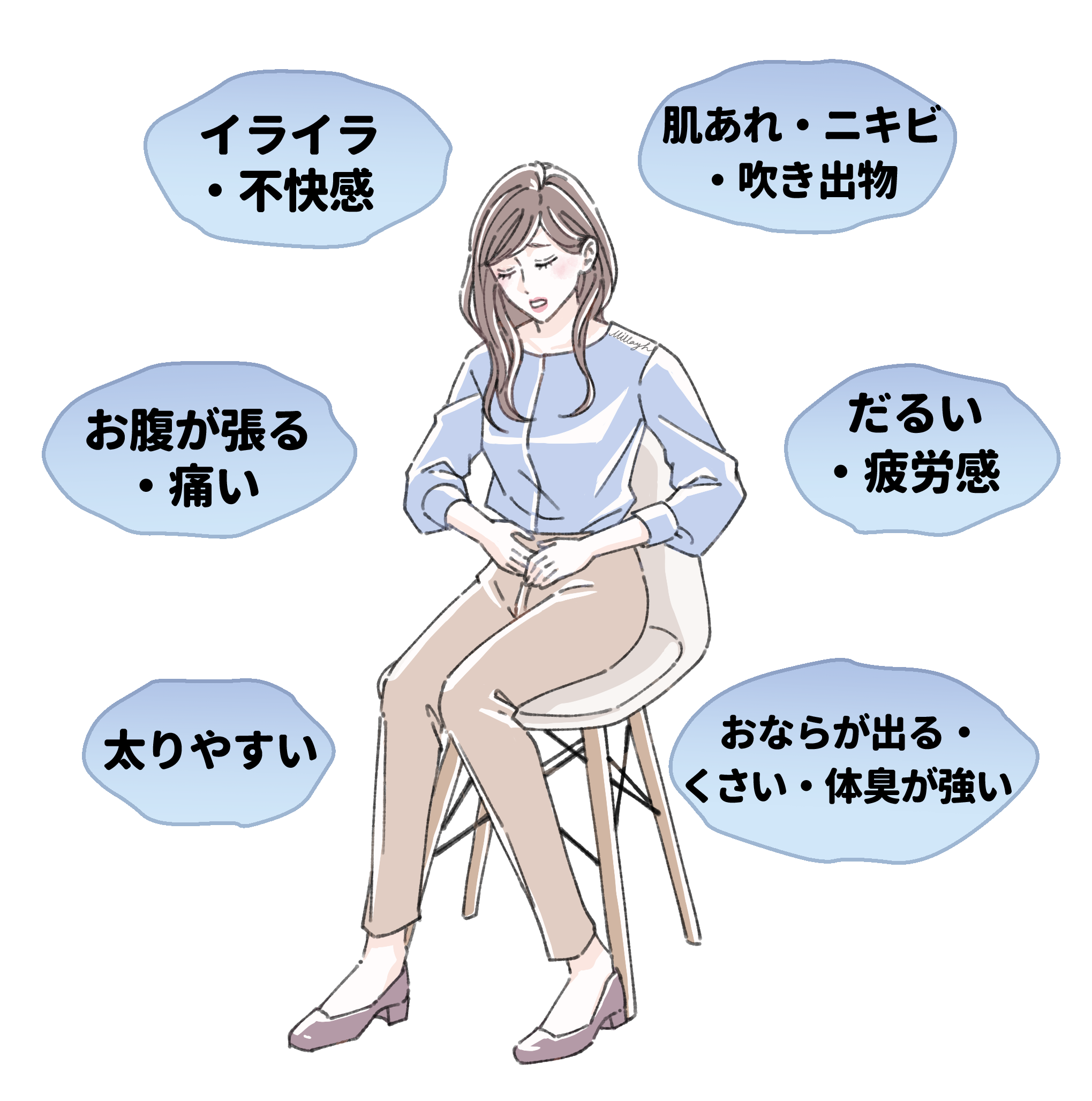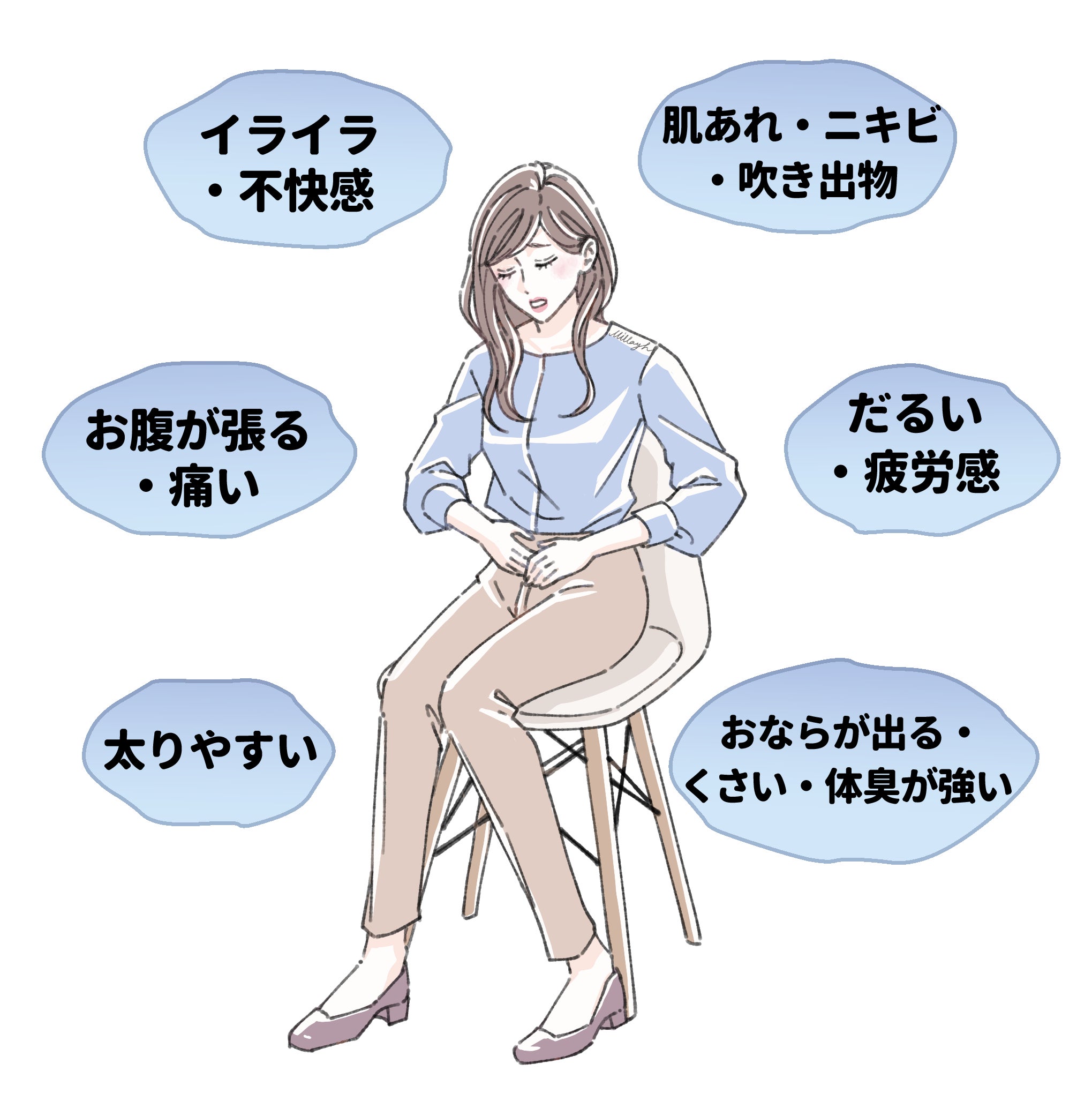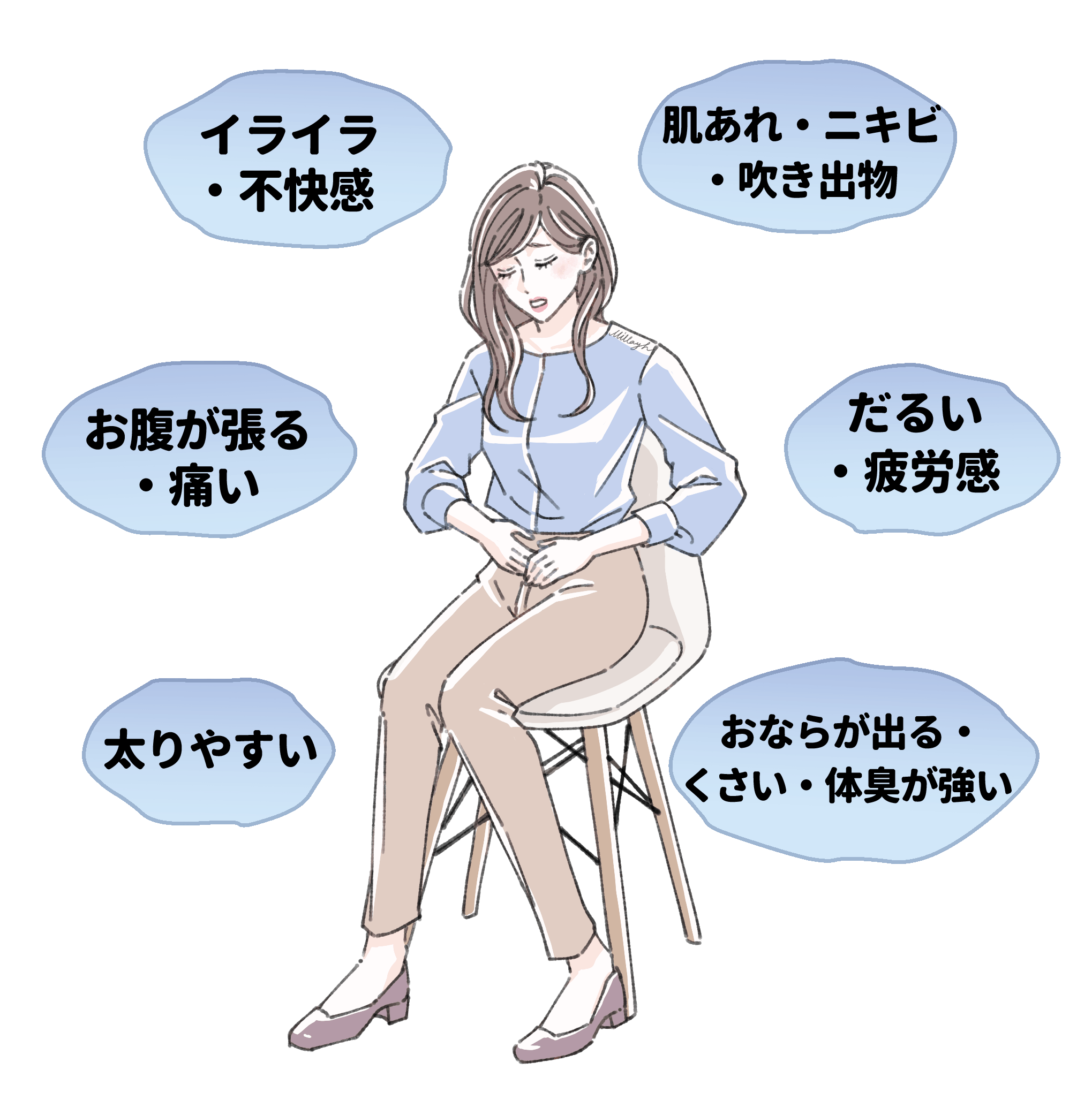 もし、あなたがこんな症状に心当たりがあるのなら、それは”お肌”の問題ではなく、”お腹の中”の問題かもしれません。