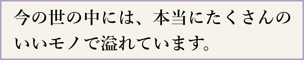 今の世の中には、本当にたくさんのいいモノで溢れています。