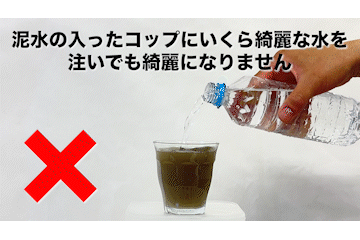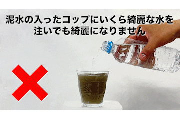 泥水に入ったコップに綺麗な水をいくら注いでもコップの中の水は綺麗になりません。