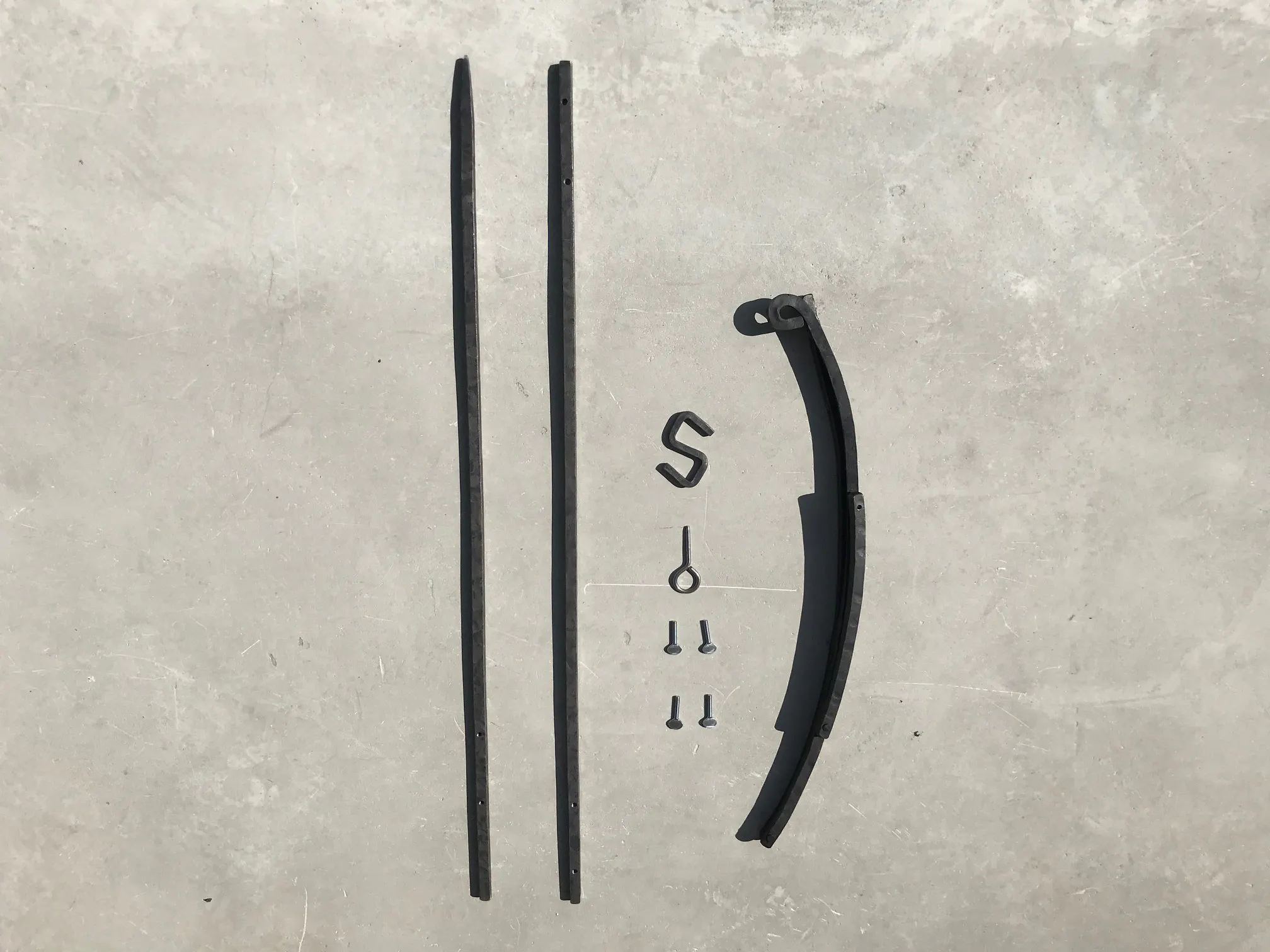 足も2本に分かれて取り外しができ、同じ槌目のついたS字フックも付属しています。
