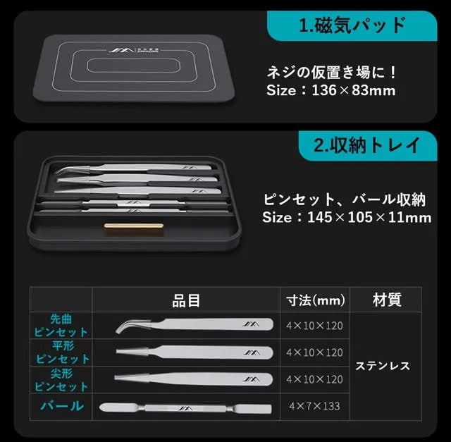 更に蓋の部分のパッドは磁気パッドで、作業時の滑り止めマットとしても活用できるほか、作業中のネジがなくならないようくっつけて一時置きすることもできます。