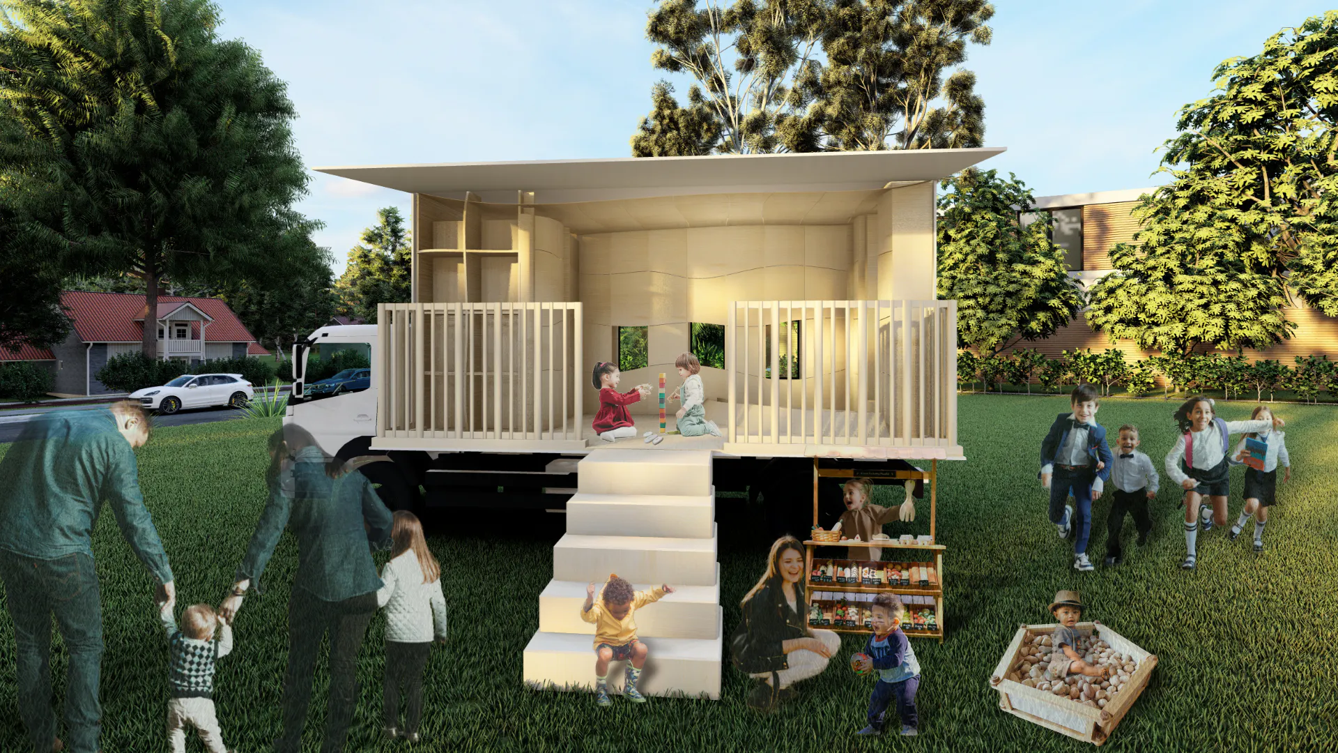 自社の被災をきっかけに子育てをサポートする装備を備え、災害時にも支援ができる1台で多機能な木育トラックをつくりたい!と思い、今回のプロジェクトを立ち上げ、2024年1月「木育トラック」製作が始まりました。この「木育トラック manaviba」を全国に広げていきたい!まずは首都圏で運用します!全国に木育、子育て支援の輪を広げる挑戦しています!