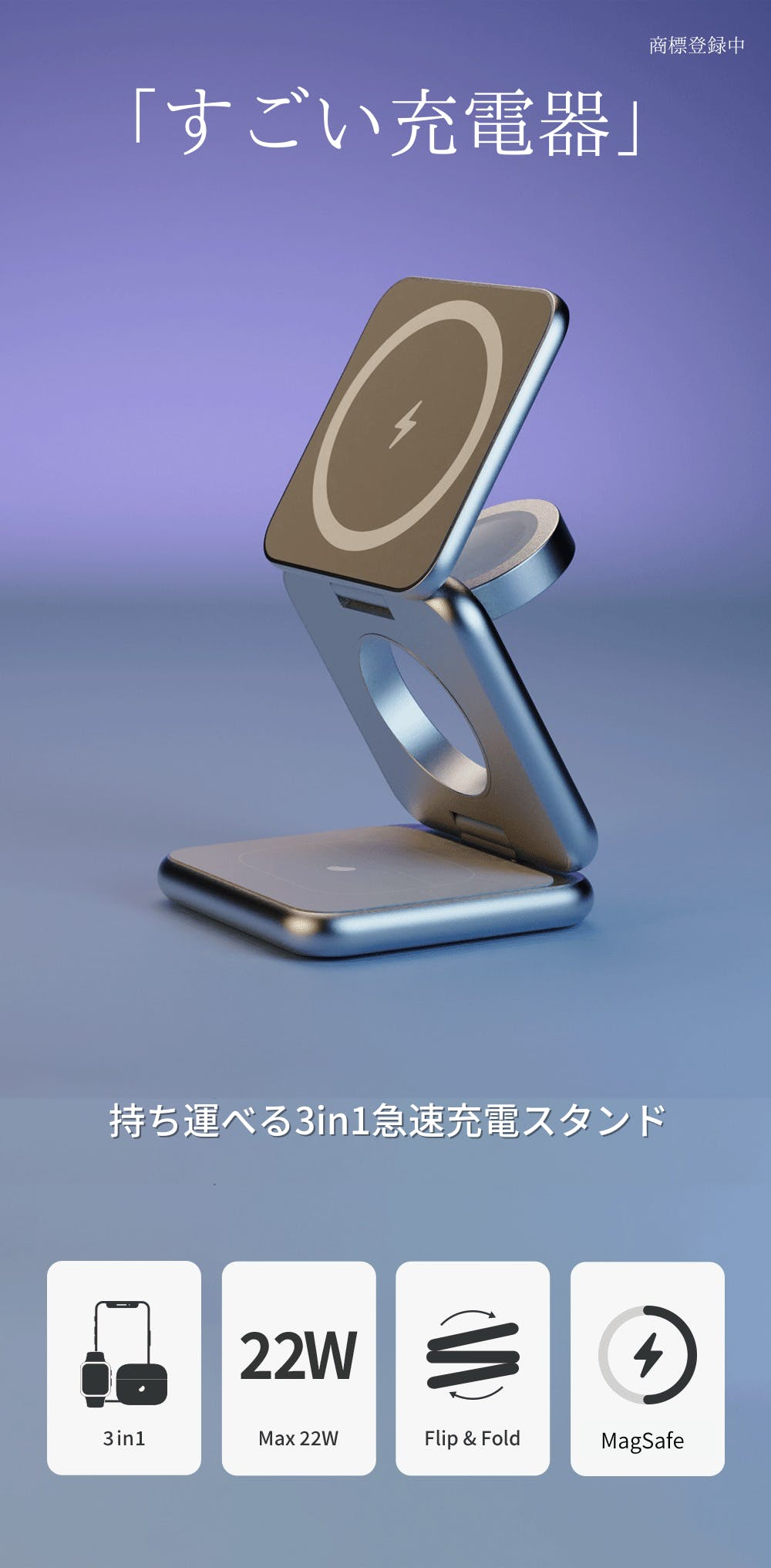 全てを1つにまとめスマートになった、MagSafe対応 3in1ポータブル式ワイヤレス充電スタンドが、常識を変えてくれるかもしれません。
