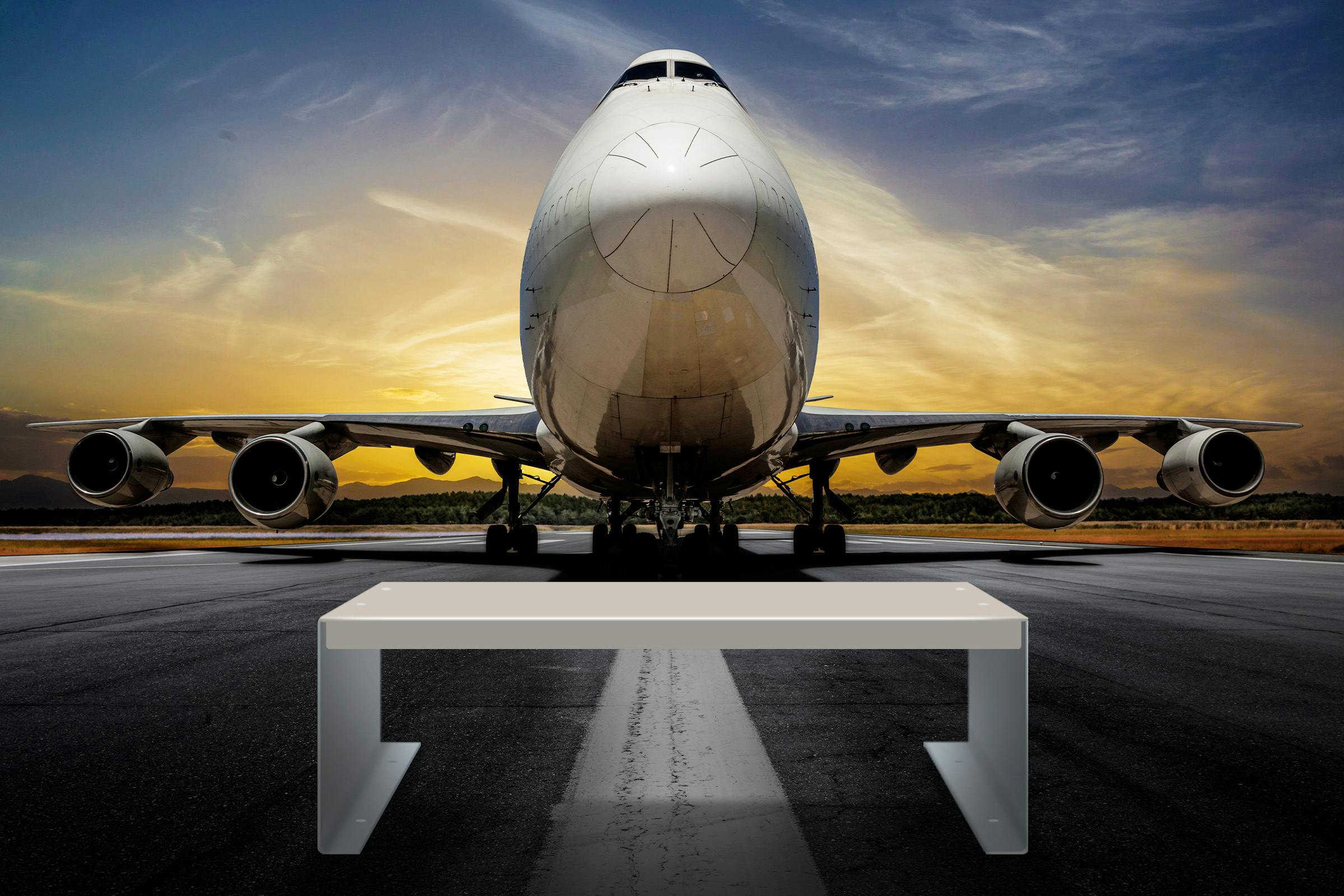 オーダーメイドのため制作するサイズにより重量が異なります。サンプル画像として掲載している「幅45㎝、高さ15㎝、奥行20㎝」の製品で約800gになります。軽量であることが必要な航空機部品の材料を使用しているため、軽い製品に仕上がるのが特徴です。