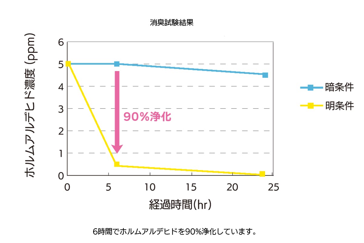 A:当社の光触媒製品はホルムアルデヒドなどの有機物を分解除去する製品です。