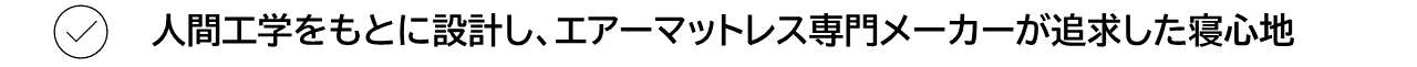 エアーマットレスで難しいのは、形を留めることのできない空気をいかにエアマットの中に均等に閉じ込め、寝心地の良さを作り出すかということ。体を横にしたときにかかる腰などへの負荷に対する十分な支力を与えられる設計について研究を進めた結果、空気を圧入するだけで体に負担を与えないという機能が備わっていない一般的なエアーマットレスやハンモックとは違い、二重壁構造(Double Wall Fabric)により一定の厚みと伸縮性をかなえたエアーマットレスの開発に成功しました。