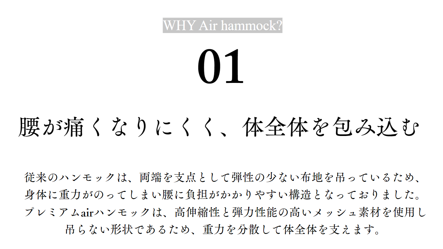 「Premium Air Hammock(プレミアム エアー ハンモック)」(以下、エアーハンモック)は