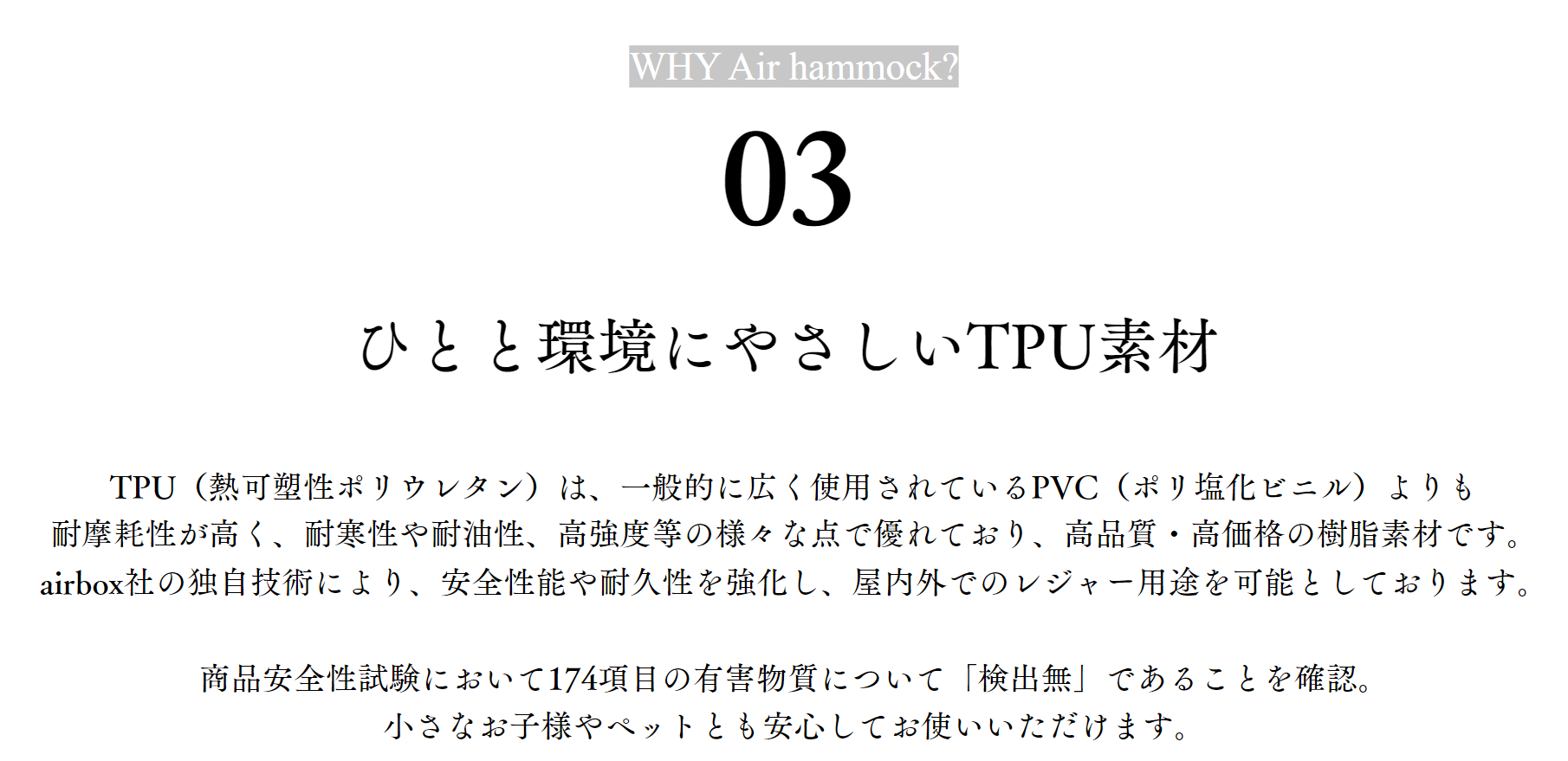 エアーハンモックを製造するairbox社は、キャンプ用品メーカーではなく、エアーベッドや競技用エアマットなどを製造するエアーマットレスメーカーです。