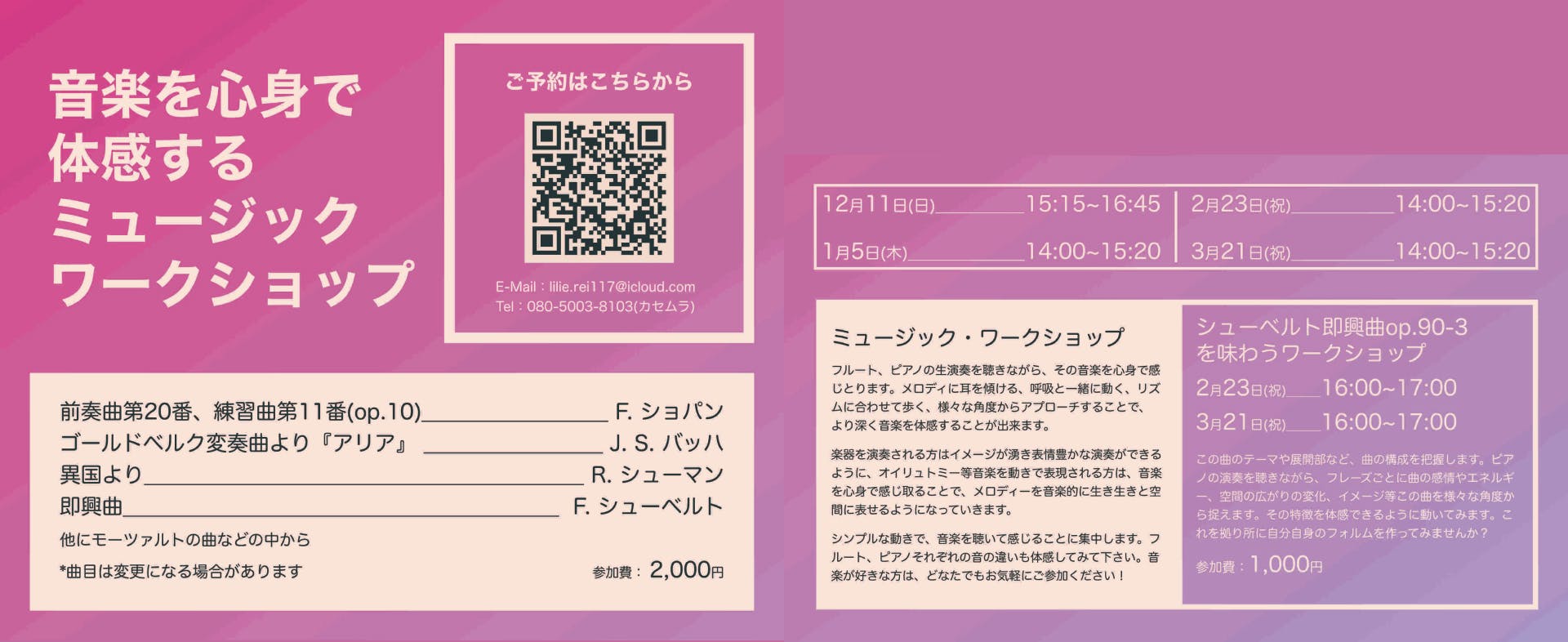 後半の2曲は、「水」がテーマです。流れるようなフルートの旋律と豊かなピアノの響きのアンサンブルでお届けします。