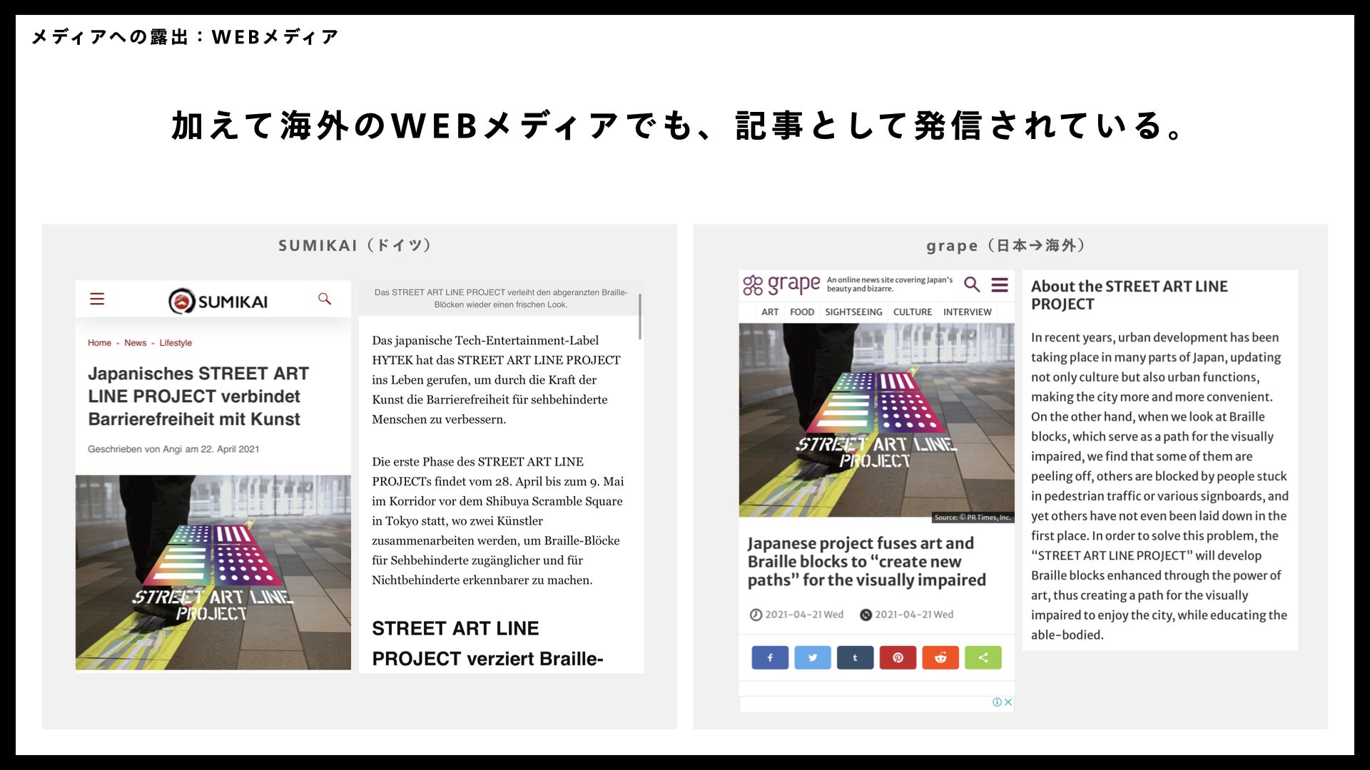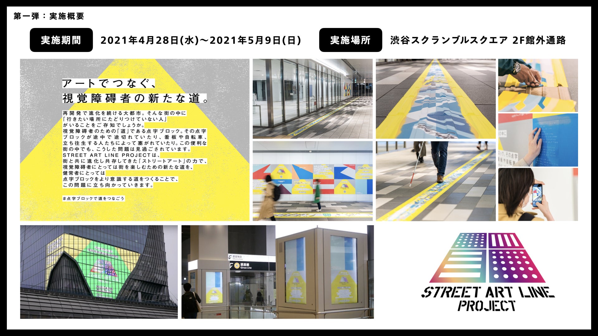 「視覚障がい者がもっと訪れやすい街づくり」に繋げていくことを目指して、STREET ART LINE PROJECTの活動を行っています。