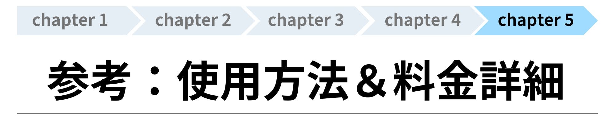 Chapter5 : 参考情報(使用方法&料金詳細)