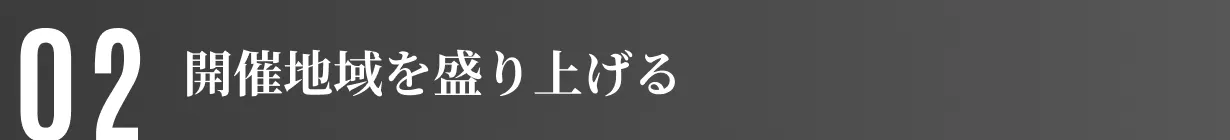 また、全国から参戦する選手が集まるため、その関係者が大会以外の時間には観光などをできる余裕のあるスケジュールを組むことで開催地域への還元や運営スタッフを現地の方に協力お願いすることで人の交流を生み出し思い出としてもらえるように大会運営を準備いたします。