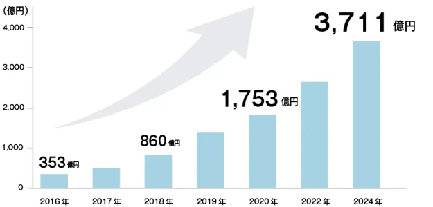 現在、国内外問わずドローンの産業活用は加速しており、その規模は国内で毎年22.8%増加傾向にあり2027年度には8,000億円規模まで拡大すると予測されています。
