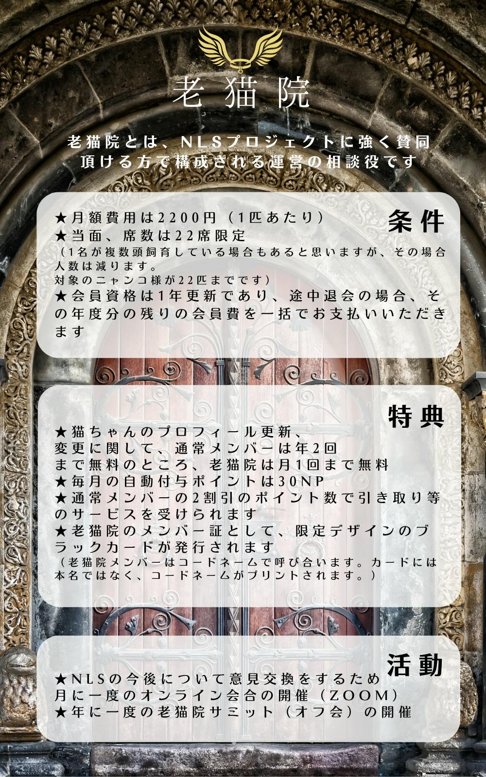 いわゆるVIPメンバーです。詳細はリターンページと本記事後半の「老猫院について」のコラムを御覧ください