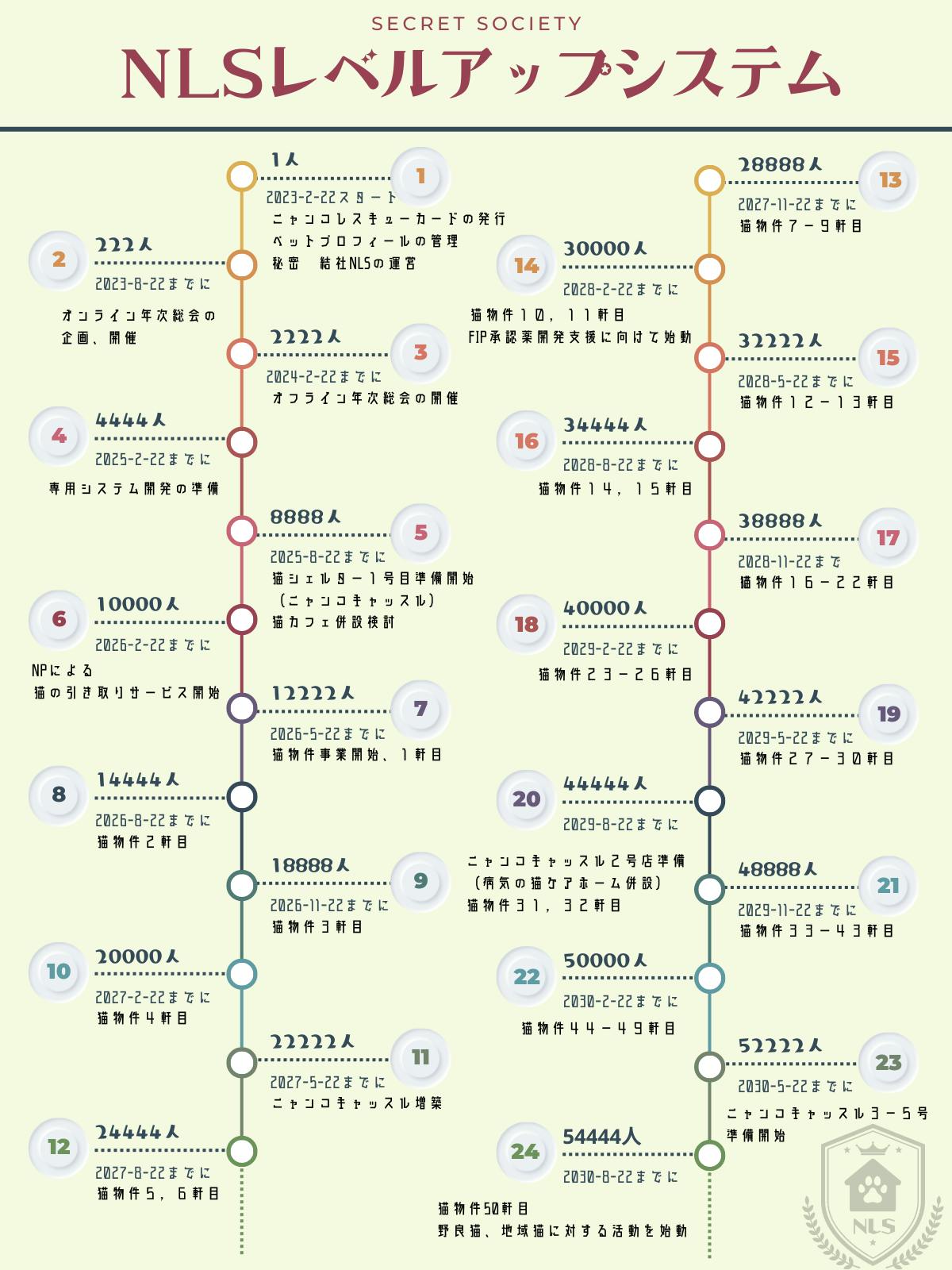 そこでNLSでは、メンバー数が12222人に達成した時点で、猫物件事業を始動させる予定です。