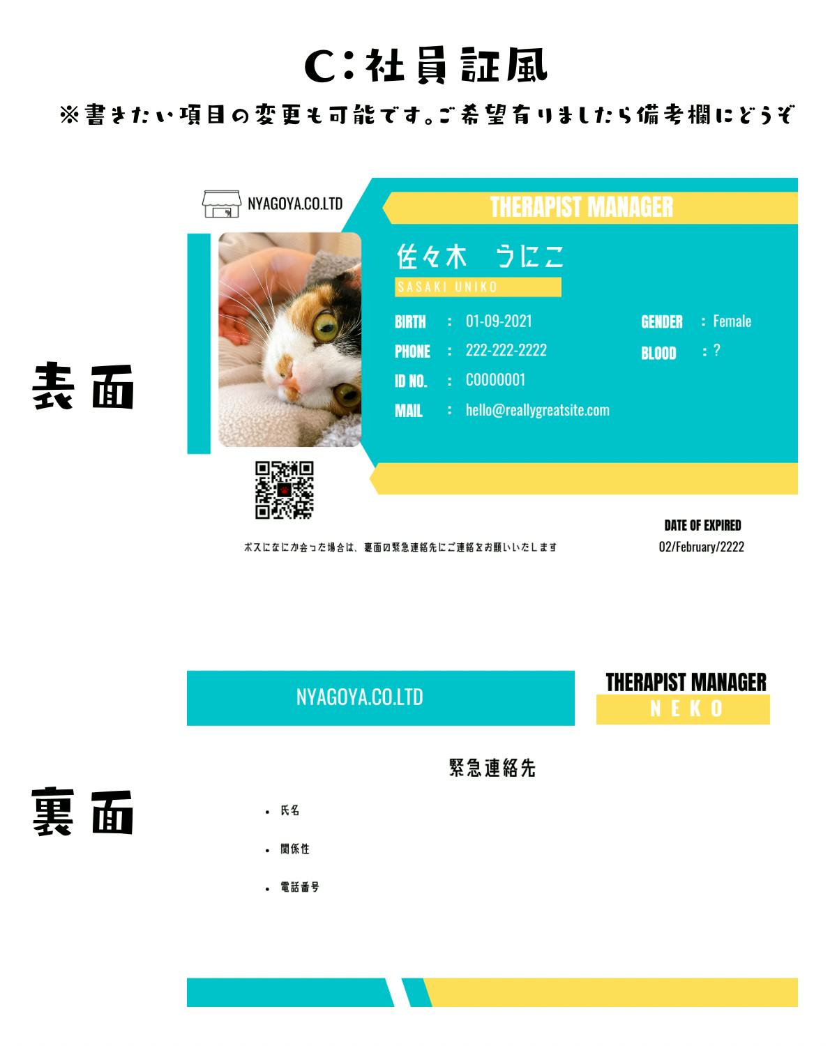 デザインは全5種類。免許証風の他に、クレジットカード風、社員証風、マイニャンバー風、メンバーカード風があります。