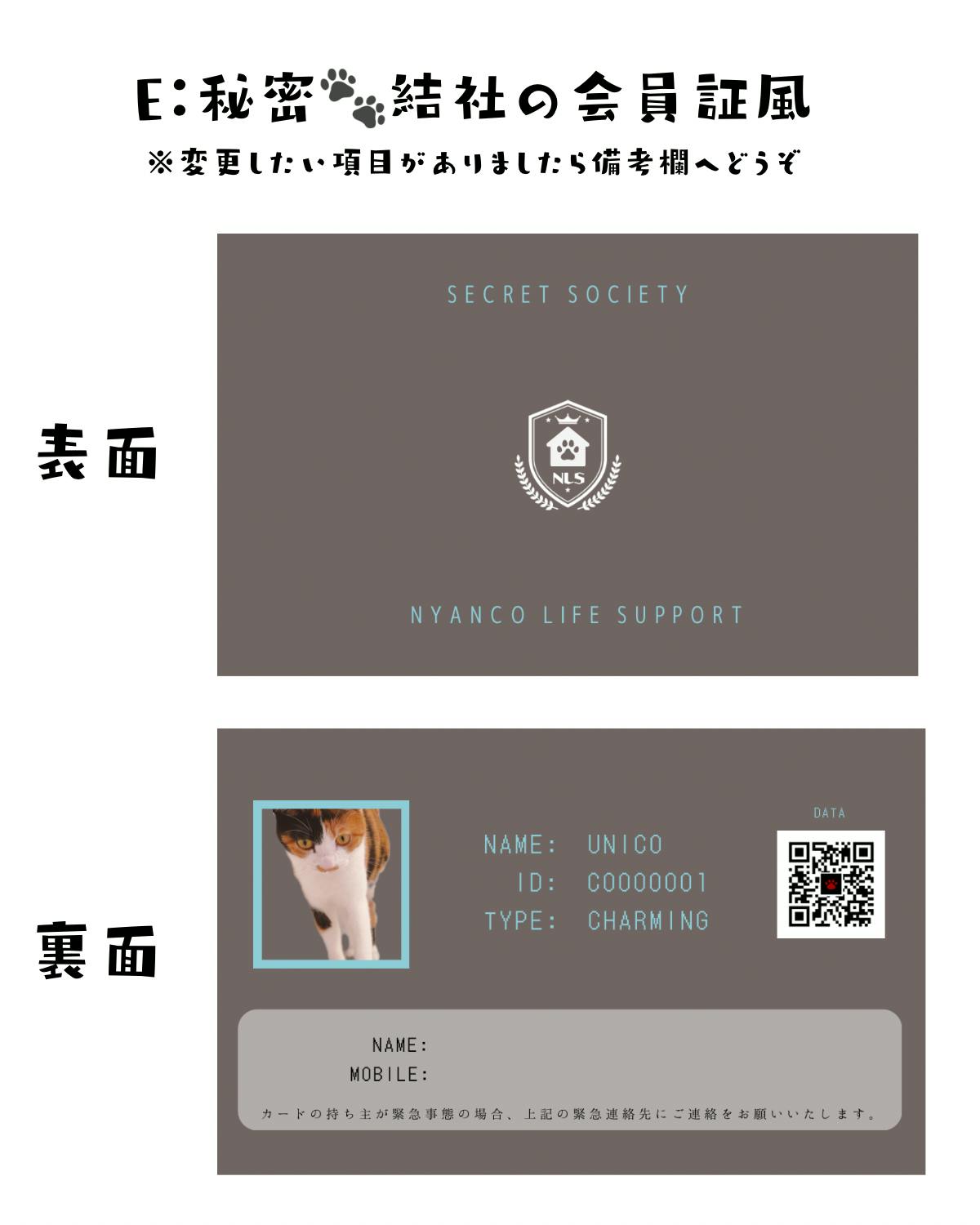 先程の「ニャンコレスキューカード」は、オリジナルコミュニティ「秘密🐾結社NLS(ニャンコライフサポート)」の入会資格証ともなっています。(入会は任意です)