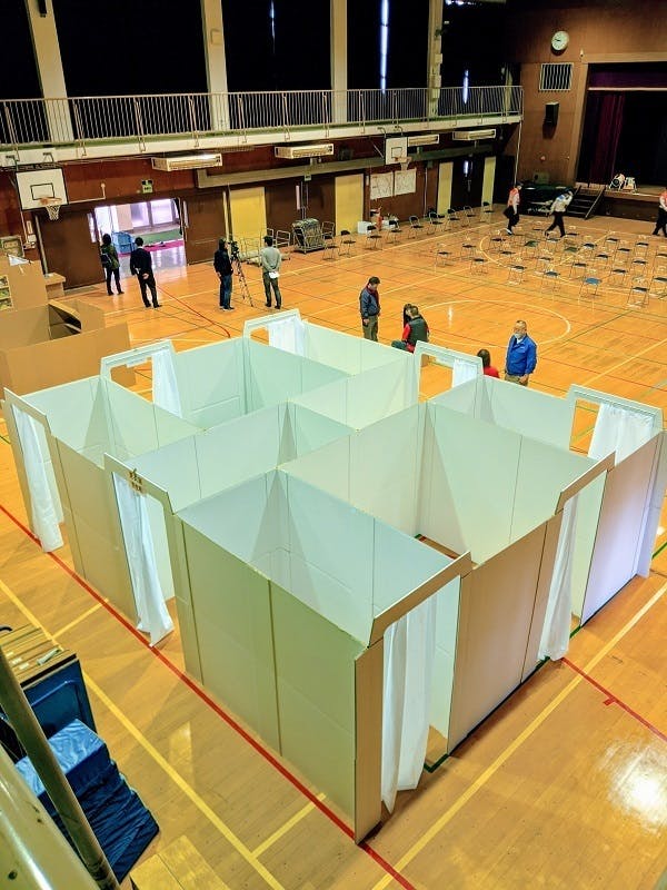 『ありそうでなかった「白」登場 避難所の段ボールパーテーション』