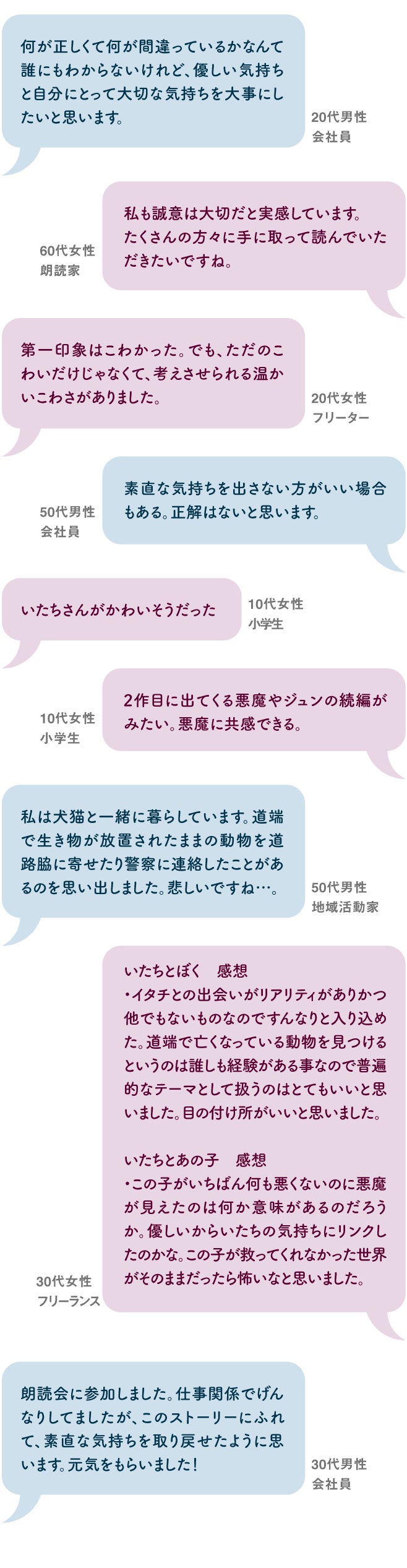 朗読会に参加した方からいただいた感想です。