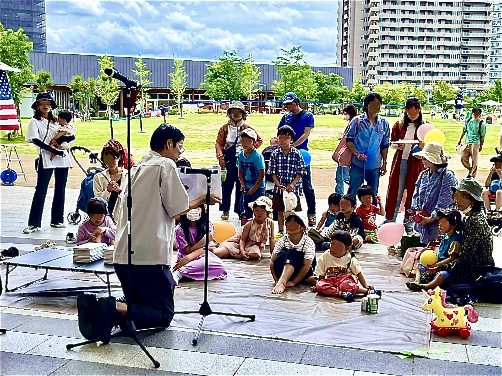2023/05/30 10:08植田薫です!先日、大津のイベントで、朗読会&弾き語りをさせていただきました。『あるがママfes』は、ママだって、やればできる!をスローガンに地域のママが主体となって、運営されています。コロナ禍でも、挑戦して子どもたちに楽しい時間を作ろう!と、共感した地域の方々から応援され、6回目の開催となりました。リーダーの赤阪純子さんは、高校の同級生。立ち上げの頃、いろいろ相談にのっていました。当時、ここで、絵本の朗読会ができるなんて、想像もしていませんでした。朗読、弾き語りを聞いてくれたこどもたちは、小学生からママのそばにじっとしてる子、抱っこされてる赤ちゃんまで。朗読会終了後、子どもたちに10冊、献本できました^_^このフェスの根っこの想いは、大人が挑戦する背中をみせること。そうすることで、子どもたちも感化されて自分なりに挑戦する。ぼくも、ぼくなりにそんな連鎖の一つになれたこと、よかったなあ〜と思いました^_^ もっと見る