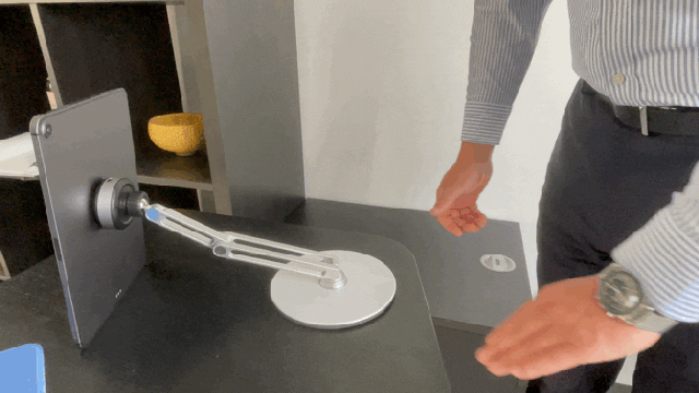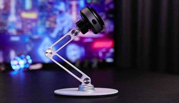 V360は真空の力でタブレットPCやスマホを保持するアームスタンド型のタブレットスタンドです。タブレットをスタンドに軽く押し付けるだけでピタッと吸着します。360度回転するので、あなたの好みの高さと角度でモニターを視聴できます。