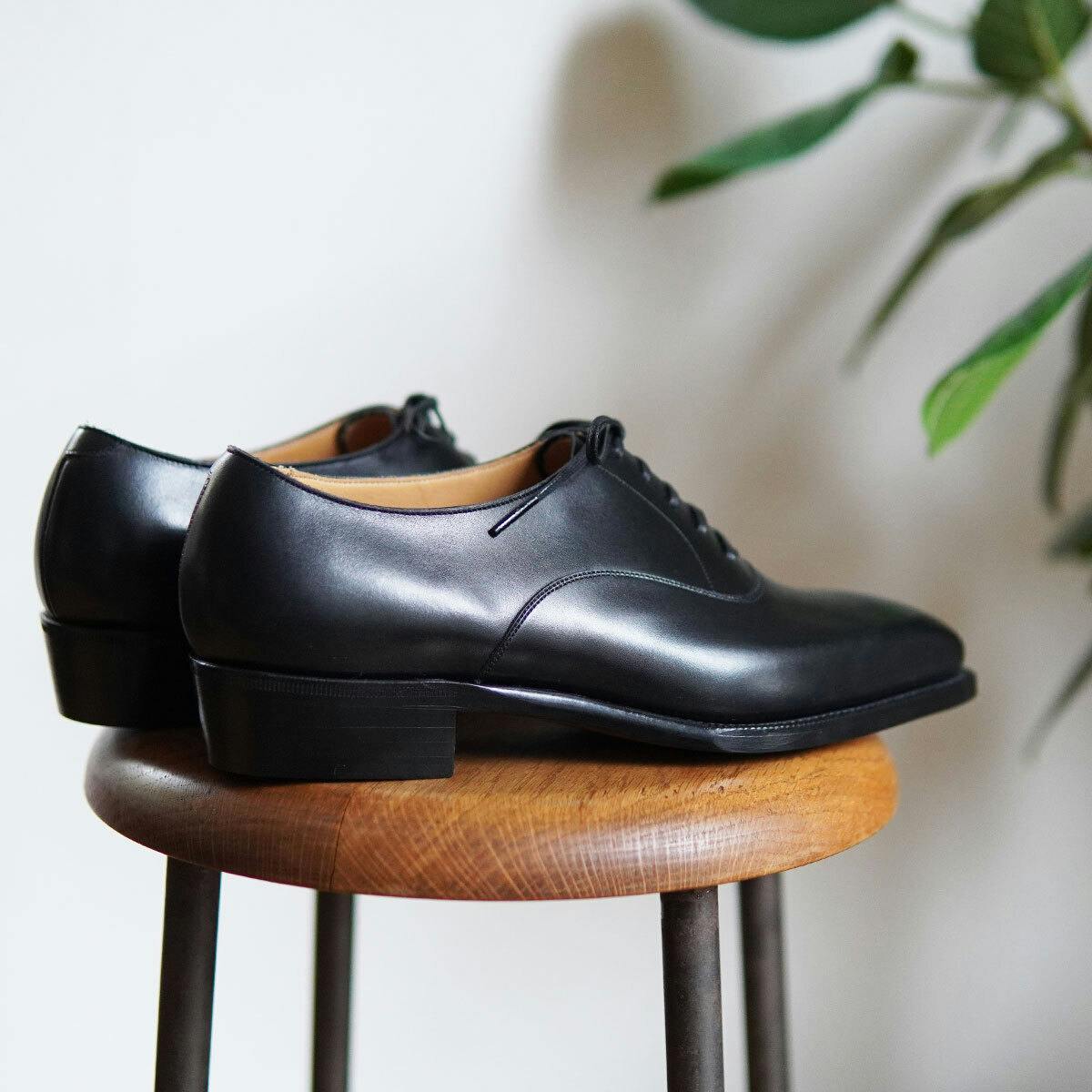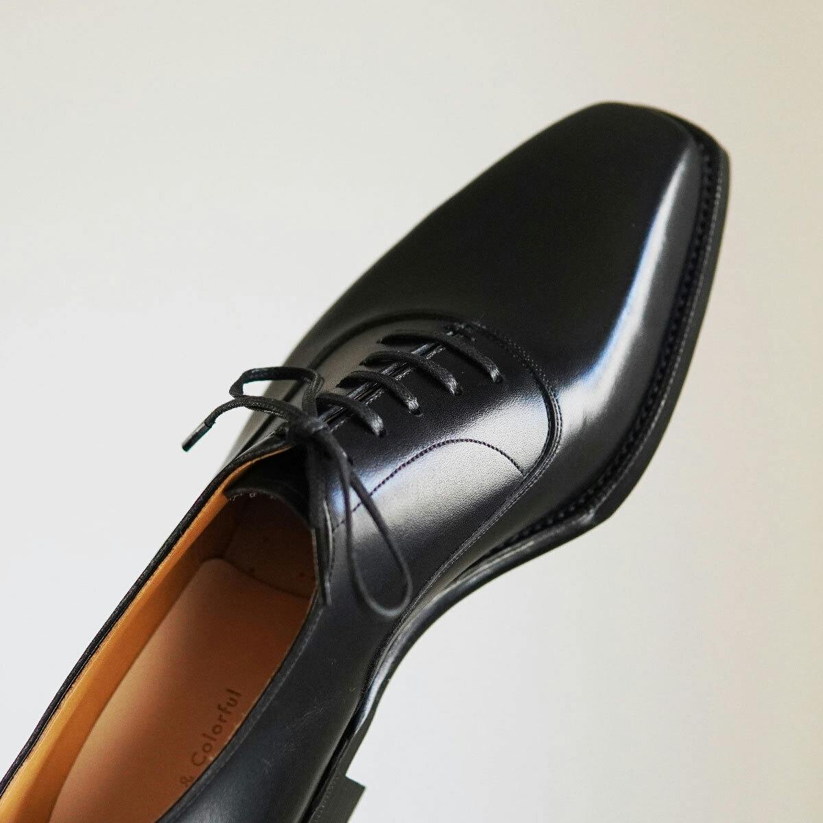 そして1足目となる今回は、エッジの効いたスクエアなつま先が特徴のドレスシューズをご提案いたします。