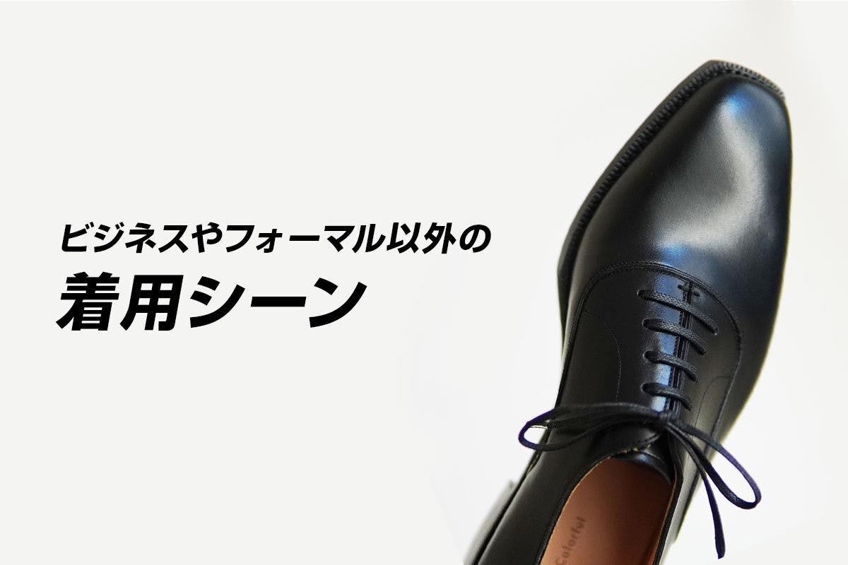 ドレスシューズとしての位置付けを守りつつ、ドレス要素を強調しすぎないことで、ドレスダウンした休日のスタイリングにも合わせやすいデザインバランスになっています。