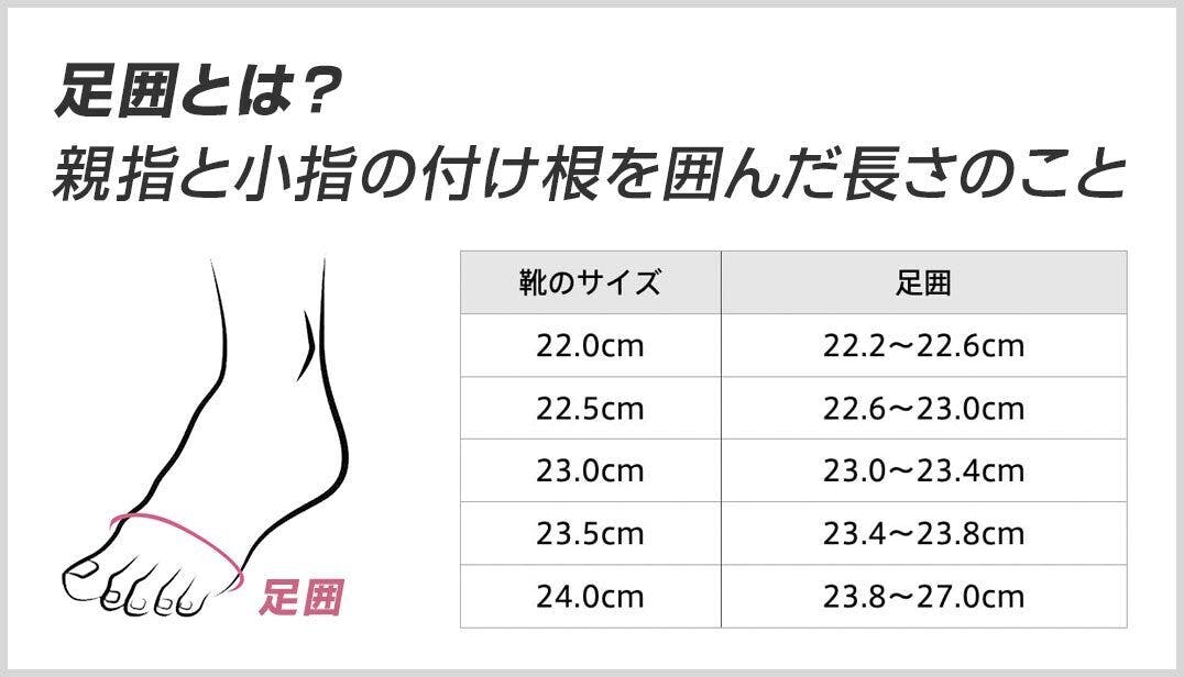 サイズ選びには足長の実寸値以外にも足囲を参考にしてください。