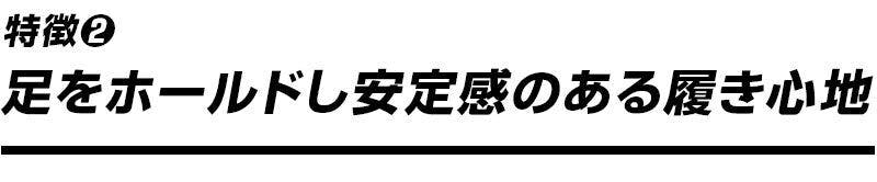 このロングカウンターと呼ばれる芯材が、土踏まず後部とかかとをしっかりサポートしつつ、靴紐を結ぶことで足の甲を捉える安定感が特徴です。