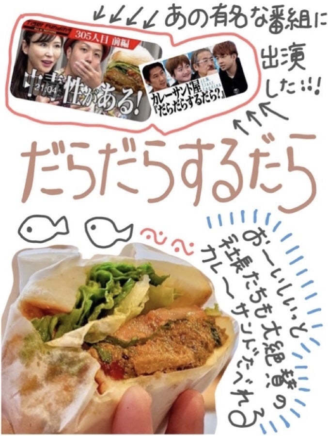 令和の虎に挑戦された際も正々堂々とプレゼンをしている姿を思い出します。僕も心から応援しているカレーサンド屋「だらだらするだら」をぜひご支援ください!