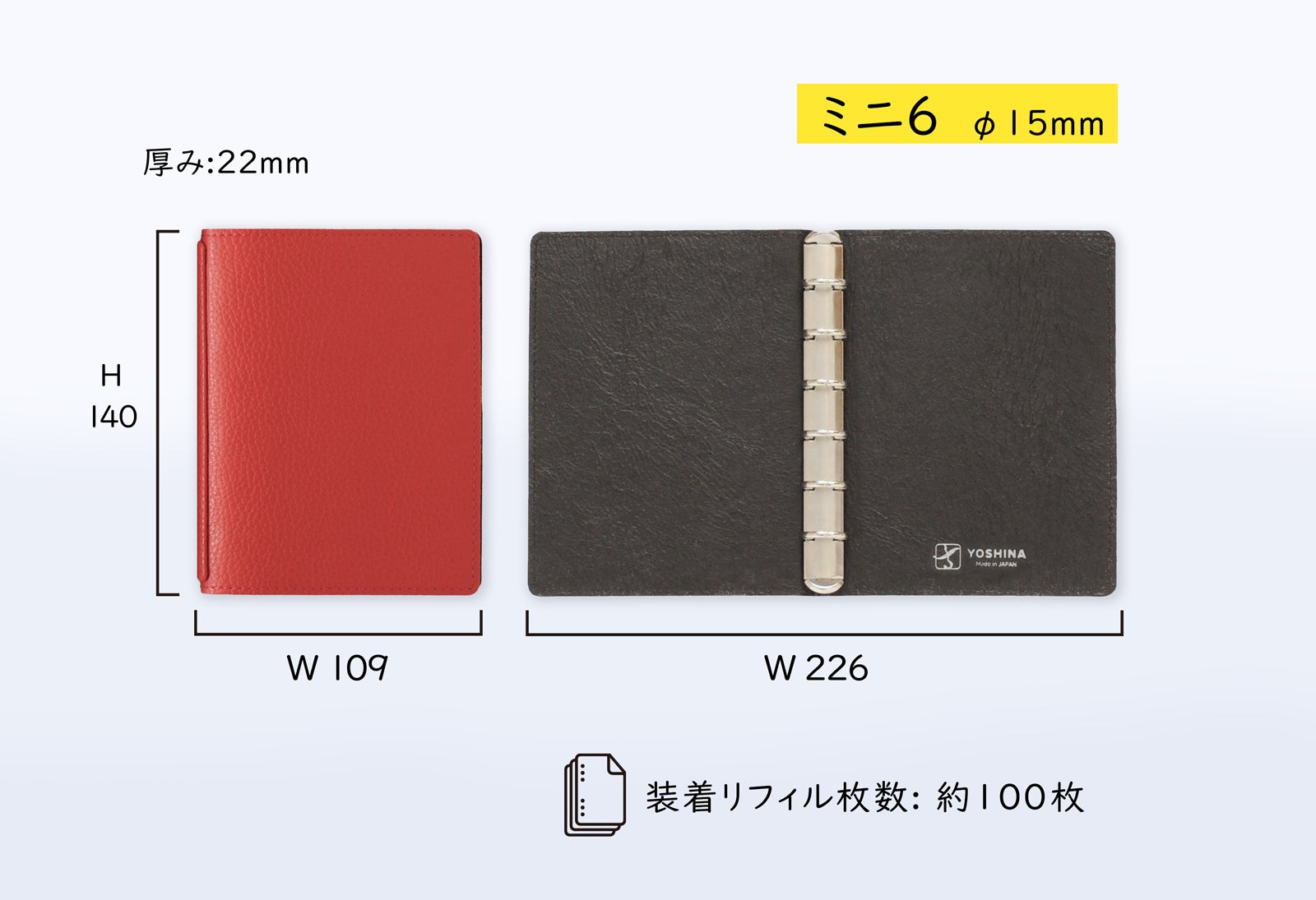 ■ ミニ6サイズ[126 x 80mm] リング径φ15mm
