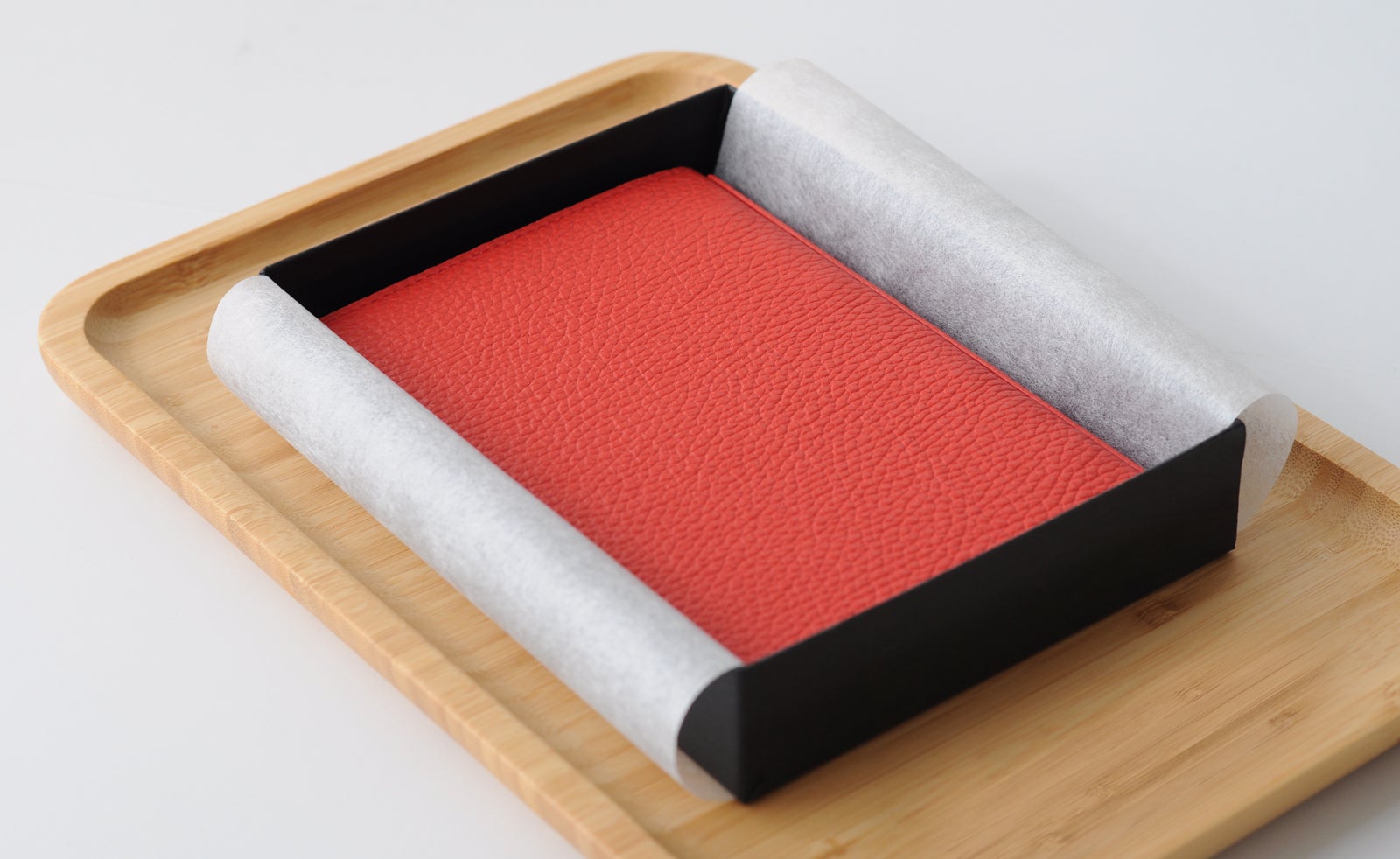 リフィル本体はドイツ製のエコレザーを採用しています。天然革の端材をゴムなどで固めて作られており、天然革の風合いを残しつつ、滑り止め効果が高いです。